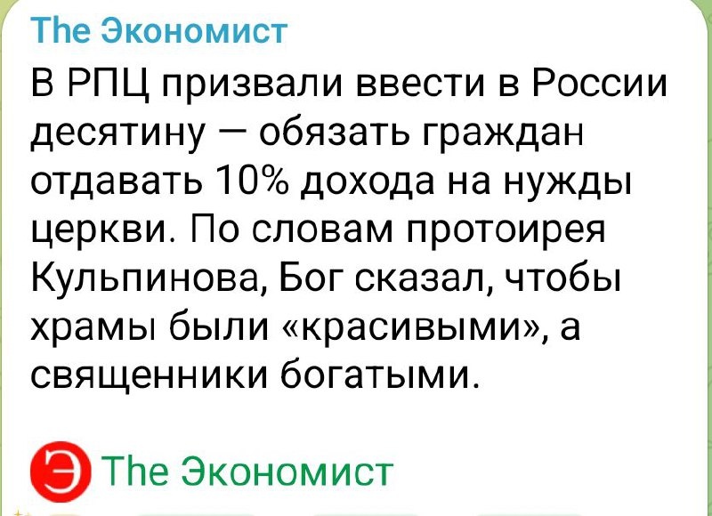 Плати налоги, оплачивай штрафы, подать за ЖКХ, оплата за платные дороги, опять же акцизы, пени, прочие сопутствующие выплаты. И я уже не говорю про добровольные пожертвования нашей воюющей Армии. Так что РПЦ надо тоже пояса затянуть, переходить на квашеную капусту и постную картоху. А десятину пусть у буддистов попросят, авось не откажут😉