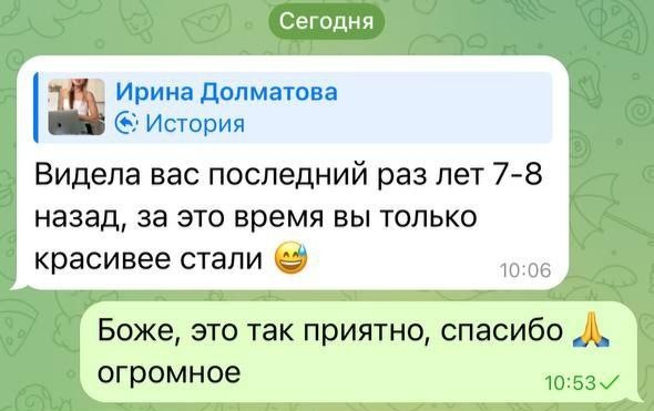 Получила такой классный комментарий: "Видела вас последний раз лет 7-8 назад, за это время вы только красивее стали