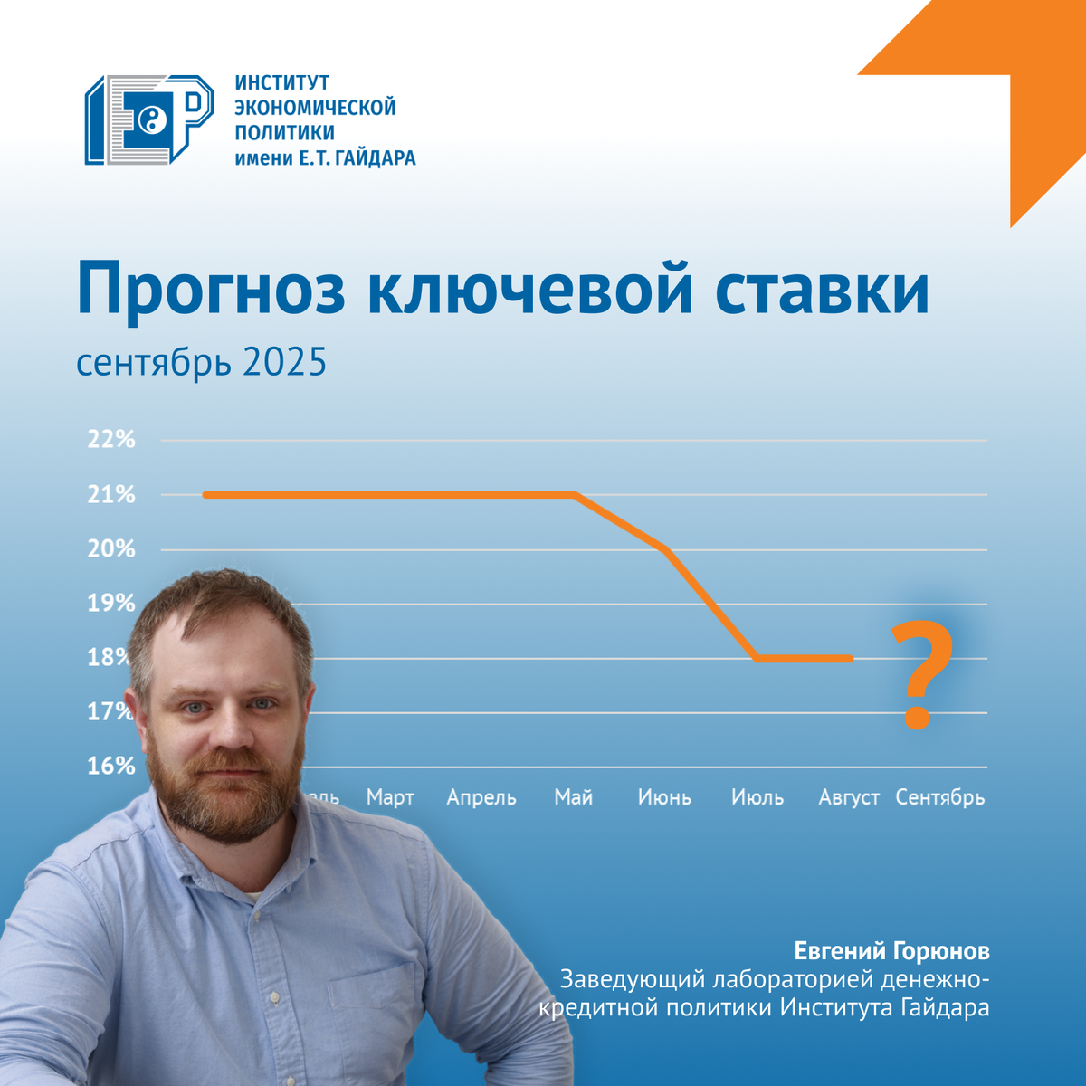 Заведующий лабораторией денежно-кредитной политики Института Гайдара Евгений Горюнов спрогнозировал предстоящее решение Центрального Банка по ключевой ставке. По его мнению, регулятор пойдёт на снижение, и наиболее вероятный сценарий — уменьшение сразу на 2 процентных пункта. 📱 Читайте нас в telegram-канале «Я прогнозирую, что ставка будет снижена на 1–2 п.п., причем вариант снижения на 2 п.п. считаю более вероятным (75%) против 25% вероятности снижения на 1 п.п. Все факторы указывают на необходимость продолжения смягчения монетарной политики. Вопрос в том, будет ли Банк России делать это ускоренно или более осторожно», – заявил эксперт. Евгений Горюнов аргументирует свою позицию текущей экономической ситуацией: «Динамика цен (около 3–4% инфляции за последние 3 месяца в годовом выражении с поправкой на сезонность) при экономике, находящейся на грани рецессии, указывает на ускоренное смягчение (сокращению ставки до 16%)». При этом он не исключает и более консервативный подход со стор