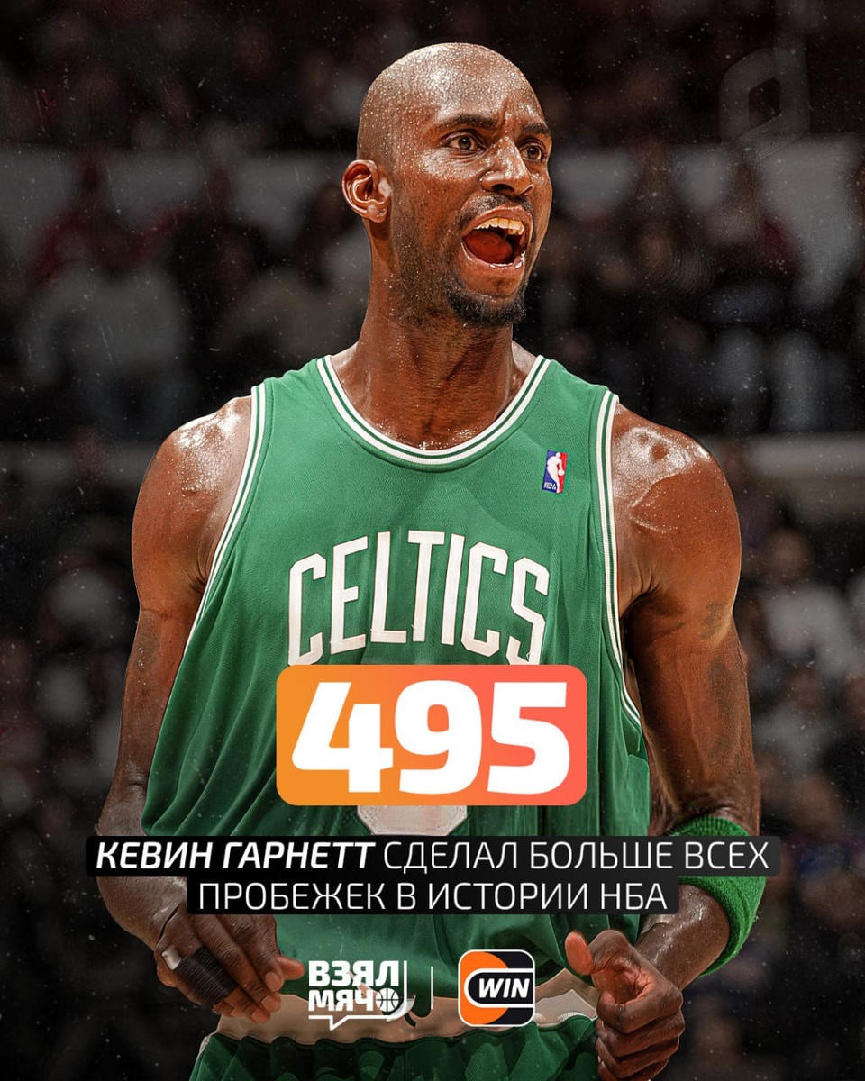 👣 Кевин Гарнетт больше всех натоптался в НБА С сезона 1996/97, когда лига начала отслеживать всю статистику по ходу матча, никто не сделал больше пробежек, чем Гарнетт. Топ-10 по пробежкам за карьеру выглядит так: Кевин Гарнетт — 495 Дуайт Ховард — 370 Леброн Джеймс — 355 Шакил О′Нил — 340 Яннис Адетокумбо — 327 Пол Пирс — 322 Кармело Энтони — 308 Жидрунас Илгаускас — 301 Джермейн О′Нил — 295 Тони Паркер — 291 Кого не ожидали увидеть в списке? 🤔 🏀 ПОДПИШИСЬ — ЗДЕСЬ ЖИВЁТ БАСКЕТБОЛ!