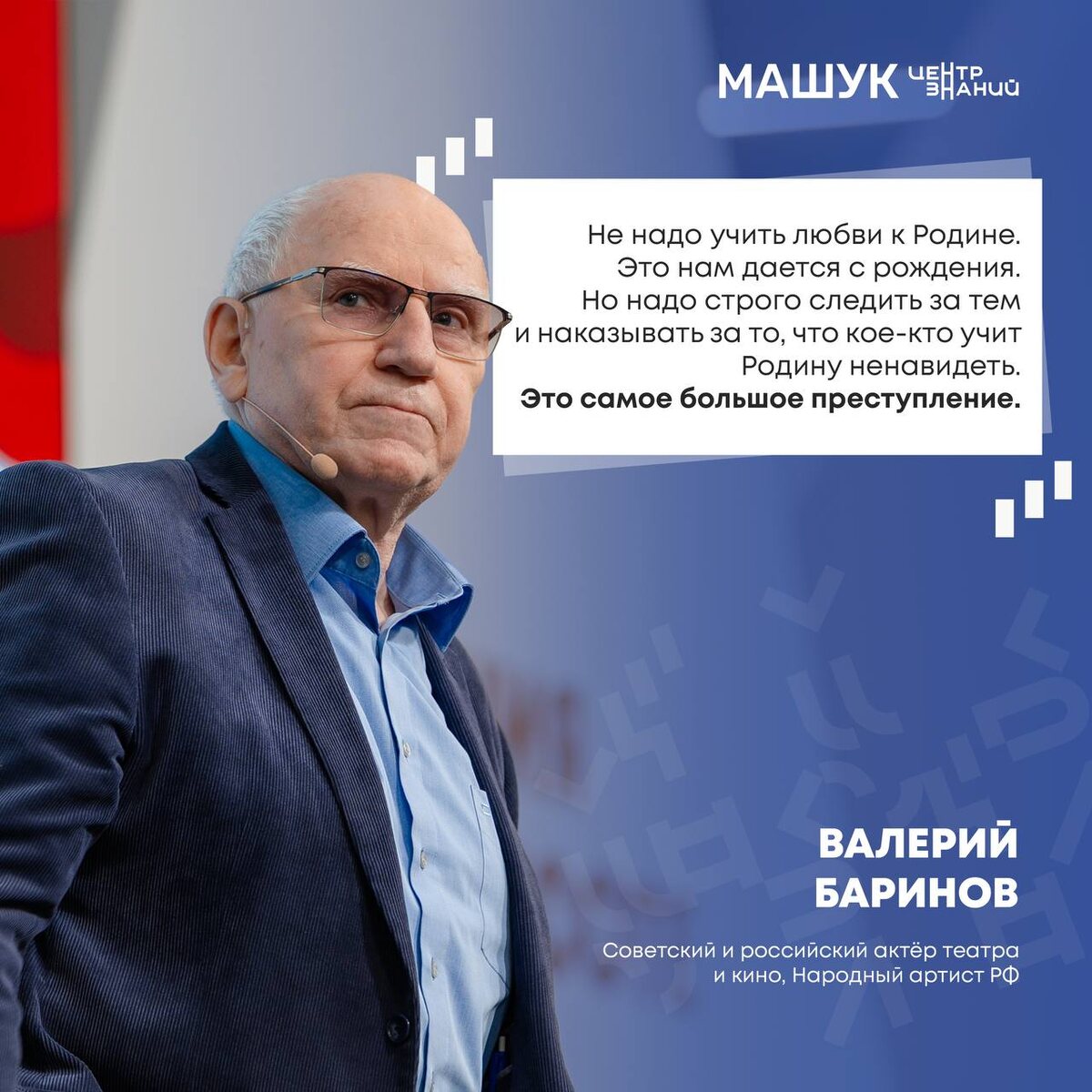 📝 Настоящее кино воспитывает зрителя через экран Почему фильмы о реальных событиях и людях так важны для общества? И какое место занимает патриотизм в жизни актёра и в искусстве? 👉 размышления о кино и о том, как искусство влияет на зрителя, — в нашем интервью с советским и российским актёром театра и кино, Народным артистом России Валерием Бариновым.