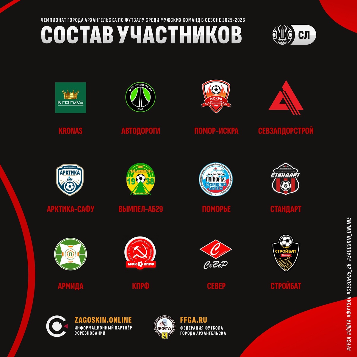 🔥 Предварительный состав участников | Суперлига В Суперлиге в связи с вполне ожидаемым поглощением Барсов Армидой освободилось вакантное место, которое заняли Автодороги. #zagoskin_online #ффга #футзал #перваялига #высшаялига #втораялига #третьялига #суперлига #сезон25_26