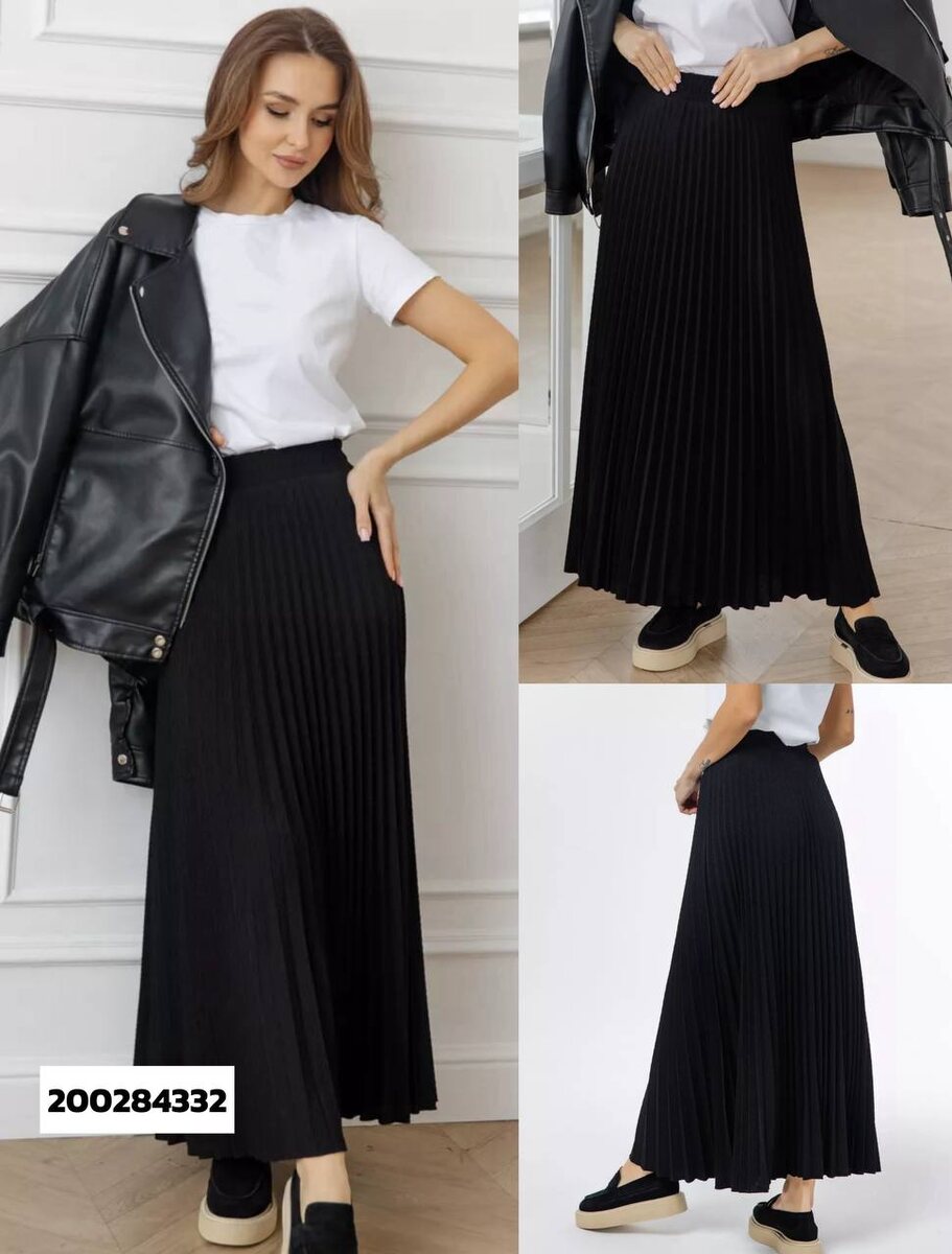 Плотный эластичный трикотаж держит глубокую плиссировку, не «ломается» при ходьбе, создаёт красивую вертикаль. Пояс на широкой мягкой резинке — удобно и в офисе, и в дороге. Длина макси струится по щиколотку, в движении юбка раскрывается «веером».