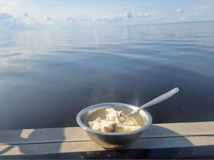 Рецепт вкусной ухи простой, это максимально свежая рыба: где поймали там и сварили.