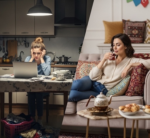 Я пишу о Турции уже не первый год, но всё ещё продолжаю удивляться. Мы, русские девушки, часто приезжаем сюда со своими стереотипами. Вот, например, мы привыкли думать, что турецкие женщины живут по строгим правилам, а русские — более свободные и независимые. Я даже сама недавно написала об этом статью. И что вы думаете? Буквально вчера сижу в кафе, пью кофе. Ко мне подходит знакомая русская девушка, которая здесь живёт уже полгода. Она смотрит в одну точку, на столик напротив, где сидит турчанка с детьми. Лицо у знакомой было задумчивое, и я спросила, что случилось. Она отвечает: "Слушай, а на самом деле, кажется, я завидую ей". Я удивилась. "Почему?" "Ты только посмотри," — говорит она. — "Она одета с иголочки. Приехала на шикарной машине. Дети — все в брендовой одежде. В обеденное время, в середине недели, она сидит в кафе с детьми, неспешно обедает. Никакого стресса, никаких забот. И самое главное — видно, что муж её полностью обеспечивает. Ей не нужно думать, хватит ли денег на