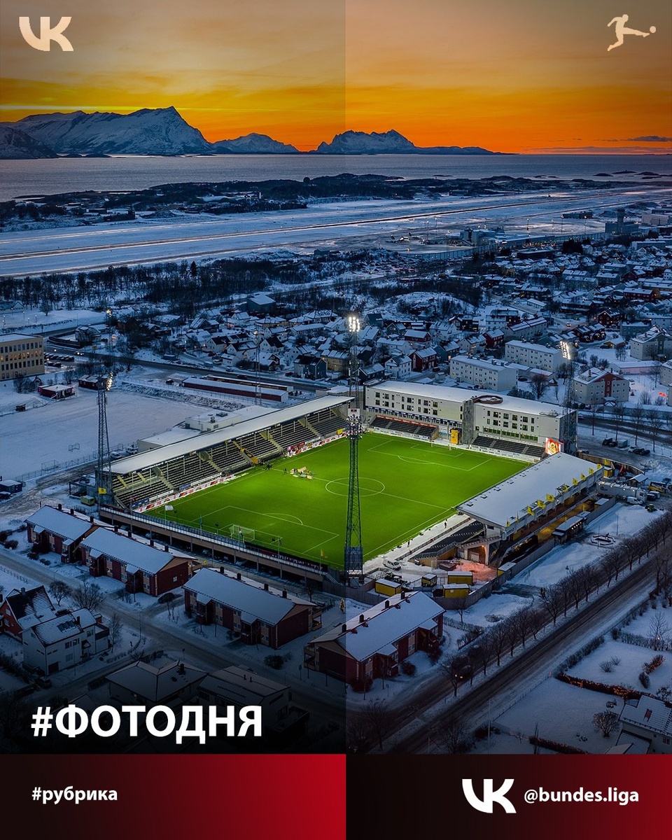 #ФотоДня 📸 Впервые в истории матч Лиги Чемпионов пройдёт за полярным кругом ❄🏆 «Будё-Глимт» - норвежский футбольный клуб из города Будё. Основан 19 сентября 1916 года. Домашние матчи проводит на стадионе «Аспмюра», вмещающем 7 400 зрителей. Небольшой клуб из Боде, города с населением всего 50 000 человек, теперь будет принимать гигантов европейского футбола под арктическим небом ⚽️ 🇳🇴 Болельщики увидят футбол мирового уровня, где полуночное солнце и полярные ночи встретят матчи Лиги Чемпионов. В общем этапе Лиги чемпионов сезона 2025/2026 норвежский клуб «Буде-Глимт» сыграет с: - пражской «Славией» (17 сентября, на выезде) ✈ - «Тоттенхэмом» (30 сентября, дома) ❄ - «Галатасараем» (22 октября, на выезде) ✈ - «Монако» (4 ноября, дома) ❄ - «Ювентусом» (25 ноября, дома)❄ - дортмундской «Боруссией» (10 декабря, на выезде) ✈ - «Манчестер Сити» (20 января, дома) ❄ - «Атлетико» (28 января, на выезде) ✈