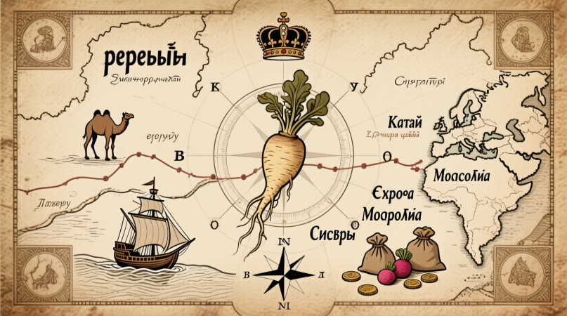 Забудьте про нефть и газ — в XVII веке главным экспортным товаром России, наряду с пушниной, был ревень. Тот самый, из которого бабушки пекут пироги. Но этот ревень был смертельно опасен. Читайте, как корень стал предметом государственной монополии, поводом для казней и даже дипломатических провалов. История, которую скрывали в школе. Сегодня мы жмём на кнопку «Заказать доставку», а в XVII веке русские ждали верблюдов из Монголии. Не с шаурмой, а с ревенём. Причём не десертным, а лекарственным — штука, которая помогала от запоров, но приносила прибыль, как нефтяной шельф. Представьте: вы — крестьянин, выкопали на огороде пару корней, решили продать соседу за бутылку самогона… А вас вешают на ближайшем дереве. Потому что в 1657 году царь Алексей Михайлович подписал указ: торговать ревенём — смертная казнь. Исключение — только Астрахань. Потому что ревень был государственной монополией, как водка в XIX веке или интернет в XXI. Откуда он брался? Из Китая. Точнее — из провинций Сычуань, Юн