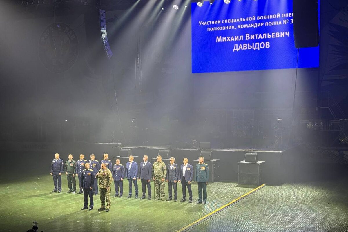 На форуме «Мы вместе! Мы едины!» выступили действующий участник СВО, офицер, полковник, командир полка №387 Михаил Давыдов и ветеран боевых