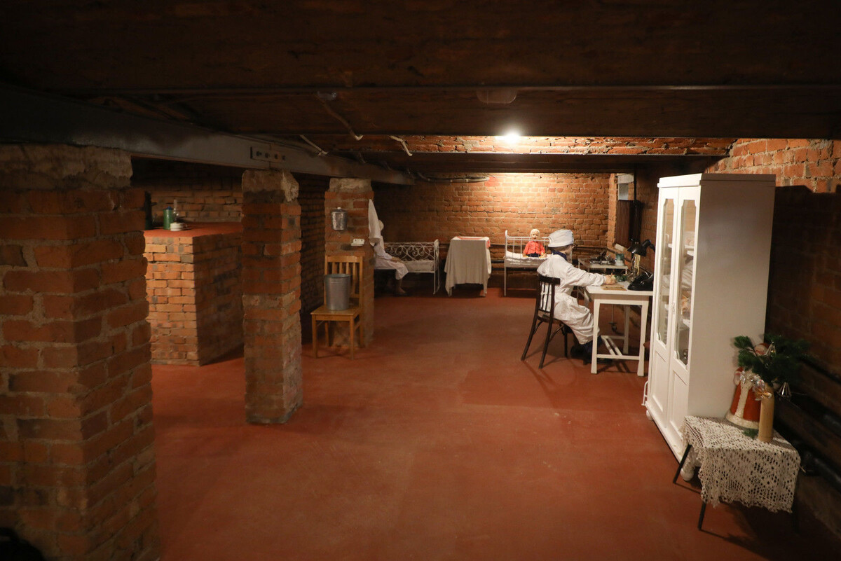 В осажденном Ленинграде оставалось около полумиллиона детей, и центром их спасения стал Педиатрический институт. «Здесь было оборудовано 14 бомбоубежищ. Самое большое находилось в хирургическом корпусе, там был самый большой подвал, – рассказала «Петербургскому дневнику» директор вузовского музея Ирина Савина. – Когда возникла мысль воссоздать экспозицию бомбоубежища, оказалось, что лучшие условия для ее оформления – в нынешнем административном корпусе. Точнее, в его подвале. Здесь тоже было бомбоубежище». В ноябре 1941 года, когда бомбежки участились, в институте решили, что дети будут жить в бомбоубежищах постоянно. Это были 175 дней горя и лишений. «Когда мы оформляли экспозицию, наши сотрудники жаловались, что в подвале нечем дышать, тут низкие потолки и нет окон. А медики с детьми здесь жили полгода! – отметила Ирина Савина. – В самую суровую блокадную зиму укрывали детей несколькими одеялами и даже матрасами, носили и кипятили воду, проводили медицинские манипуляции. Окна для про