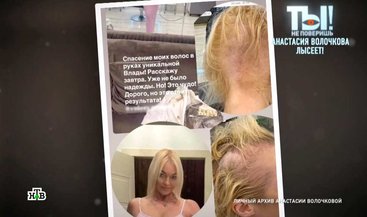 Анастасия Волочкова в ужасе — она начала лысеть и пытается это скрыть любыми способами. Балерина признается, что проблемы начались несколько лет назад, когда она решила нарастить 250 искусственных прядей, а снимала их уже вместе со своими волосами. Пока Волочкова ведет борьбу за восстановление волос, она периодически носит парики или шиньоны, делая из них зализанную прическу. Но зализанные волосы не спасают, наоборот, вызывают еще больше недоумения у поклонников, которые уверены, что балерина просто выходит в свет с немытой головой. Звездный парикмахер Сергей Зверев посоветовал ей питаться более разнообразно, а не есть одни салатные листья: «Я пытался. Я ей рассказывал, что надо обязательно есть японскую кухню, рыбу. Это хорошо для волос».