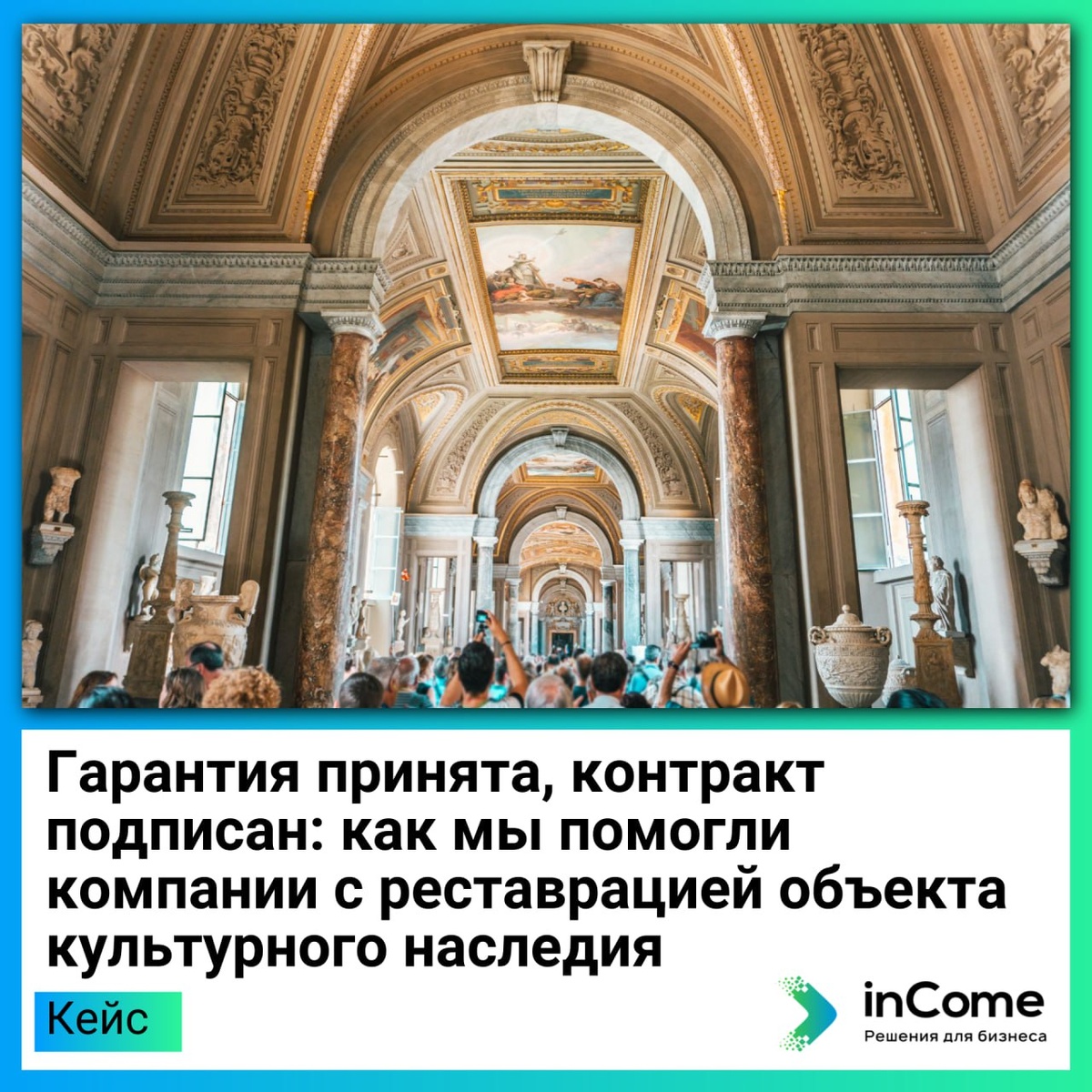 Наш клиент выиграл контракт на 26,2 млн. рублей по реставрации входных групп объекта культурного наследия. Срок исполнения – 370 дней, а для обеспечения обязательств требовалась банковская гарантия на 1,3 млн. рублей. Главная сложность – сжатые сроки и отсутствие у компании аналогичного опыта. #разборбизнеса #банковскиегарантии