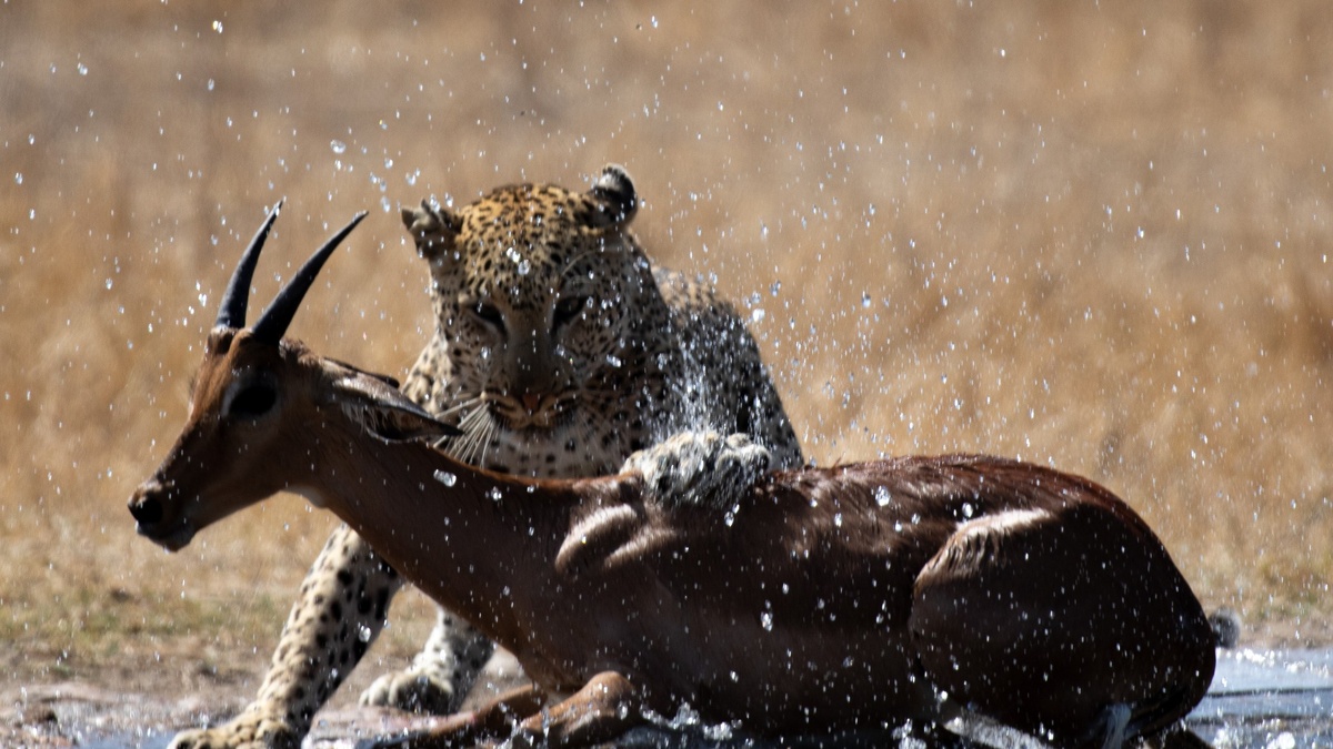 Охота леопарда в парке Крюгера в Южной Африке. Фото были сделаны недалеко от водопоя Де Ла Порт, южнее кемпинга Скукуза. Июль 2025 г.