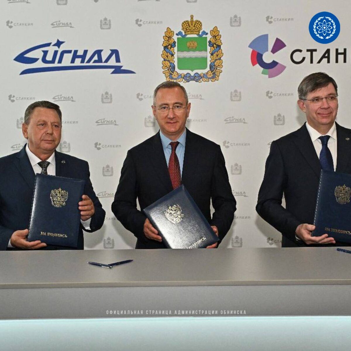 Образование ➕ наука ➕ реальное производство Знак равенства после этих слагаемых поставило открытие базовой кафедры приборостроительного и опытного инструментального производства Московского государственного технологического университета «СТАНКИН» на базе обнинского Приборного завода «Сигнал». Важный стратегический шаг в подготовке высококвалифицированных инженерных кадров. Студенты новой кафедры уже в будущем учебном году получат уникальную возможность осваивать общепрофессиональные и специальные дисциплины на одном из ключевых предприятий российского приборостроения. В процессе обучения им предстоит участвовать в решении реальных производственных задач и работать на современном промышленном оборудовании под руководством опытных специалистов завода и преподавателей университета. В торжественной церемонии открытия кафедры 9 сентября приняли участие Губернатор Калужской области Владислав Шапша, и.о. ректора МГТУ «СТАНКИН» Борис Падалкин, генеральный директор ПАО «Приборный завод «Си