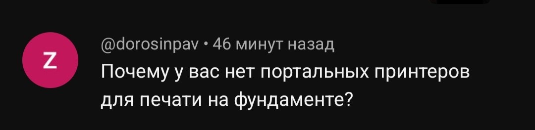 Во-первых, любой строительный принтер печатает несъемную опалубку для заливки стен дома. Это ~10% от всего дома и на это уходит в среднем пару месяцев. То есть, над одним фундаментом такой принтер находится не несколько дней, а несколько недель или месяцев. Во-вторых, считаем, что за 10 лет топтания на месте можно понять, что у портальных конструкций в 3д строительстве нет будущего. Такое строительство это не просто, не быстро и не дешево. Да и не замотивируем мы поколение зумеров и тем более альфа, месяцами печатать на улице в дискомфортных условиях. И ради чего?