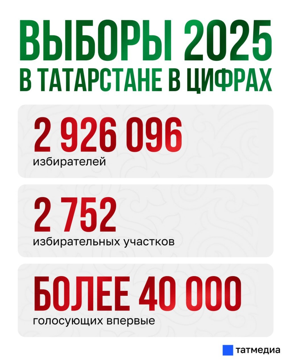В ответ на пост 🇷🇺🗳В воскресенье, 14 сентября, в республике завершаются три избирательные кампании 🔹Выборы Раиса Республики Татарстан 🔹Выборы депутатов представительных органов местного самоуправления 🔹Избиратели Мелекесского одномандатного избирательного округа №18 (город Набережные Челны) примут участие в дополнительных выборах депутата Государственного Совета. @tatmediaofficial | Все каналы Татмедиа ™️ Время читать Татмедиа в MAX - подпишитесь.