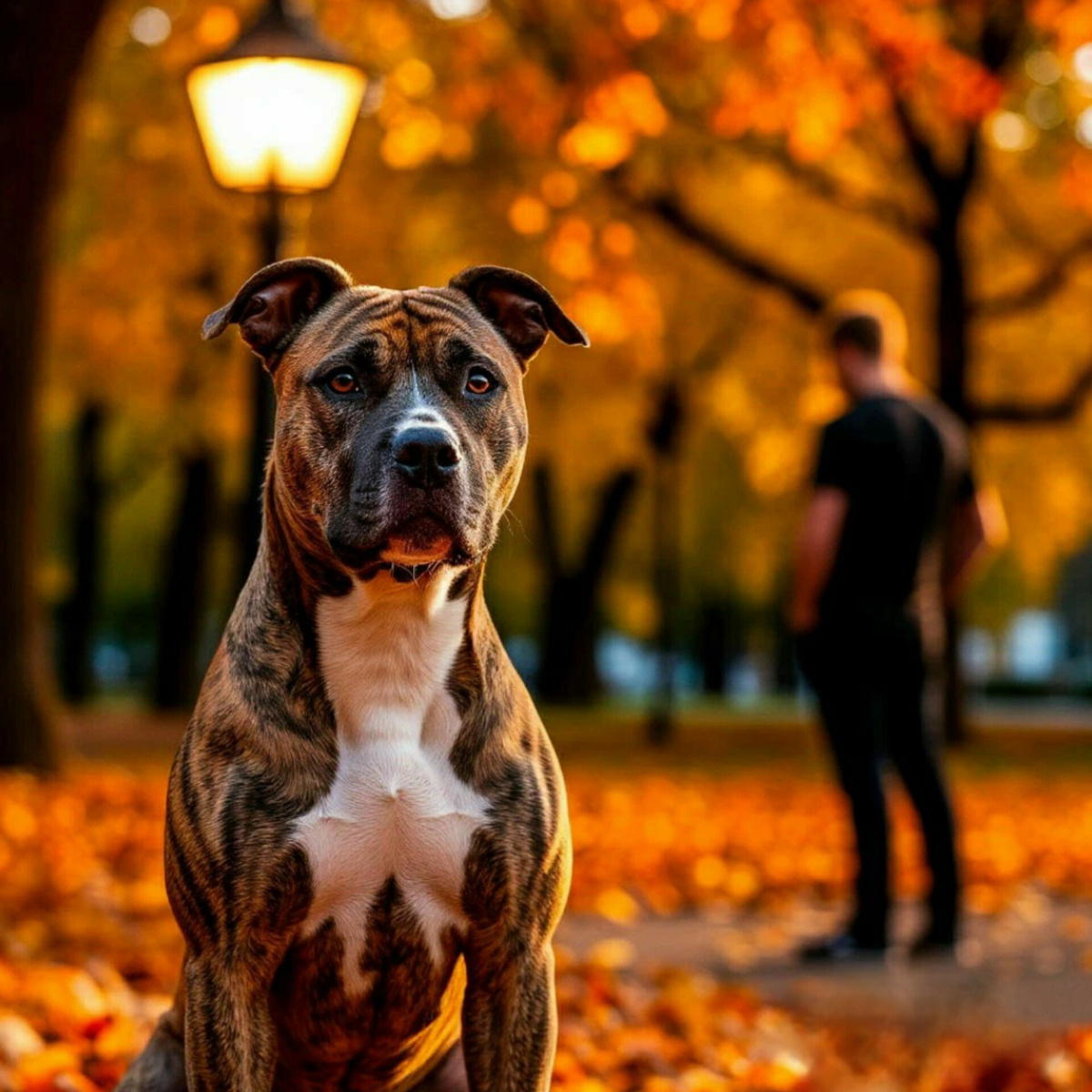Она всегда мечтала о собаке. Конкретно об амстаффе. Её манили эти мощные животные с незаслуженно страшной репутацией, и в её воображении уже жил верный пёс, который смотрел бы на неё преданными глазами. Однажды вечером, возвращаясь через сквер, она увидела красивую собаку. Именно такую, о которой грезила. Статный амстафф тигрового окраса сидел под фонарём, и его шерсть отливала медью. Восторг был мгновенным и абсолютным. Но тут пёс повернул голову. Его тёмные глаза уставились на неё, мощные челюсти были сомкнуты. Восторг сменился ледяной волной страха. Казалось, он был таким большим, реальным, а расстояние между ними — таким маленьким. Она инстинктивно остановилась и замерла. — Он не кусается, — раздался спокойный, низкий голос. Из тени скамейки поднялся мужчина. Высокий, с широкими плечами. Он держал поводок с невозмутимым спокойствием. — Просто любопытный. Правда, дружище? — Он положил руку на голову пса, и тот тут же вильнул хвостом. — Я просто... — она запнулась, чувствуя себя