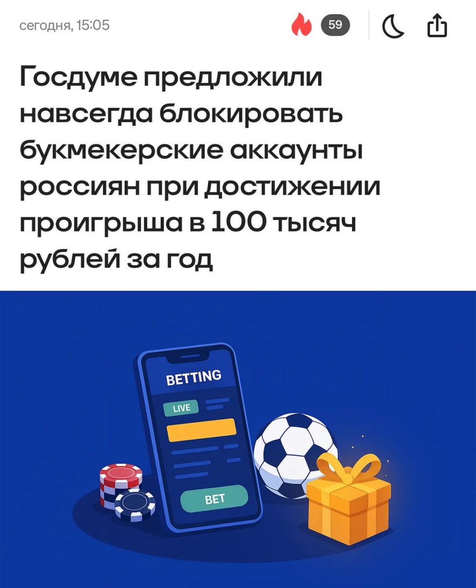 Общественные активисты предложили Госдуме ввести пожизненную блокировку аккаунтов россиян в букмекерских конторах при сумме проигрышей, превысившей 100 тысяч рублей за год. Перед достижением этого порога, когда у пользователя проигрыш составит 70–80% от лимита, ему должны отправлять предупреждение. Чтобы контролировать игровой процесс, операторам азартных игр предстоит внедрить автоматическую систему мониторинга активности.