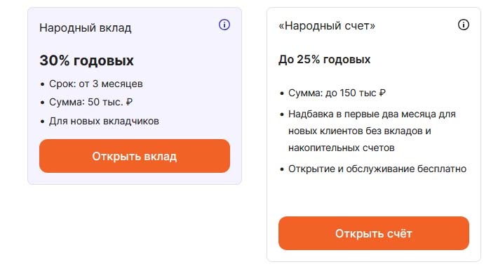Всем привет! Неделю назад жаловался вам, что не смог в интернет-банке ПСБ открыть ни акционный вклад, ни счет. Сейчас зашел - все есть. Открыл оба - сначала вклад, потом счет. ☝️В интернет-банке и приложении ПСБ появилась возможность открыть «Народный счёт» под 25% годовых и «Народный вклад» под 30%. До этого возможность была только через офис. В теории в один день новые клиенты могут оформить сразу два продукта: ✅ «Народный вклад» — 30% годовых, до 50 000 руб., срок 3/6/12 мес. ✅ «Народный счёт» — 25% годовых, минимальный остаток до 150 000 руб., срок 2 месяца. 📌 Для вклада — не должно быть вкладов и НС последние 180 дней (кроме даты открытия «Народного вклада»). 📌 Для счёта — не должно быть НС последние 90 дней и/или вкладов 180 дней (кроме даты открытия «Народного счёта»). 👉 Новички без карты дополнительно могут еще получить 2 000 руб., если оформить карту по действующей акции: