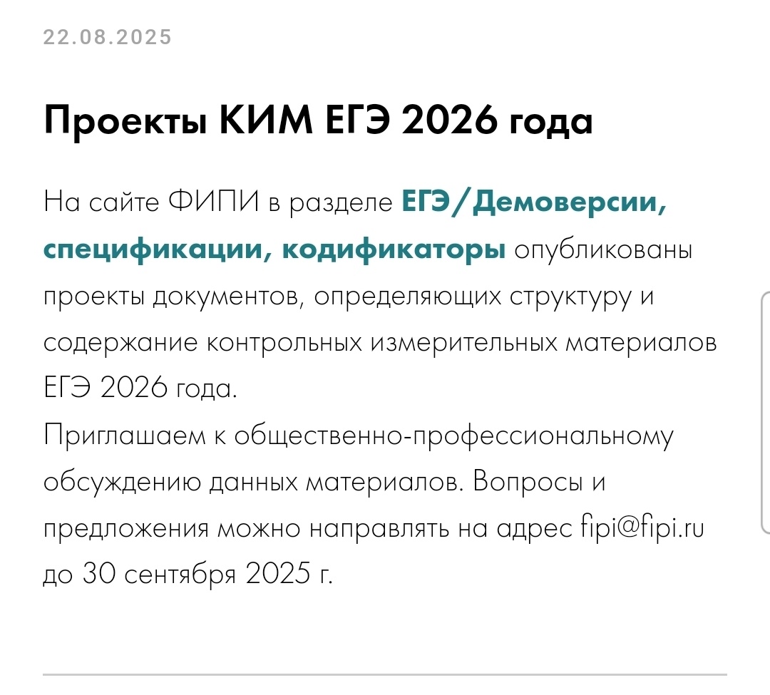 Приветствую подписчиков и гостей канала. На сайте ФИПИ приглашают к обсуждению экзаменов 2026. ФИПИ — Федеральный институт педагогических измерений, ключевая организация в российской системе образования, отвечающая за разработку и контроль качества экзаменационных материалов. Департамент образования и науки города Москвы в свою очередь предлагает образовательным организациям внести вклад в совершенствование экзаменов и направить свои предложения и замечания. ⚠️ УНИКАЛЬНАЯ ВОЗМОЖНОСТЬ. 💥 Чтобы Вы предложили для совершенствования огэ и егэ по английскому языку? 💥 Как сделать экзамены лучше? Приглашаю к обсуждению коллег и выпускников. Подписывайтесь ✅️ Good luck 💐