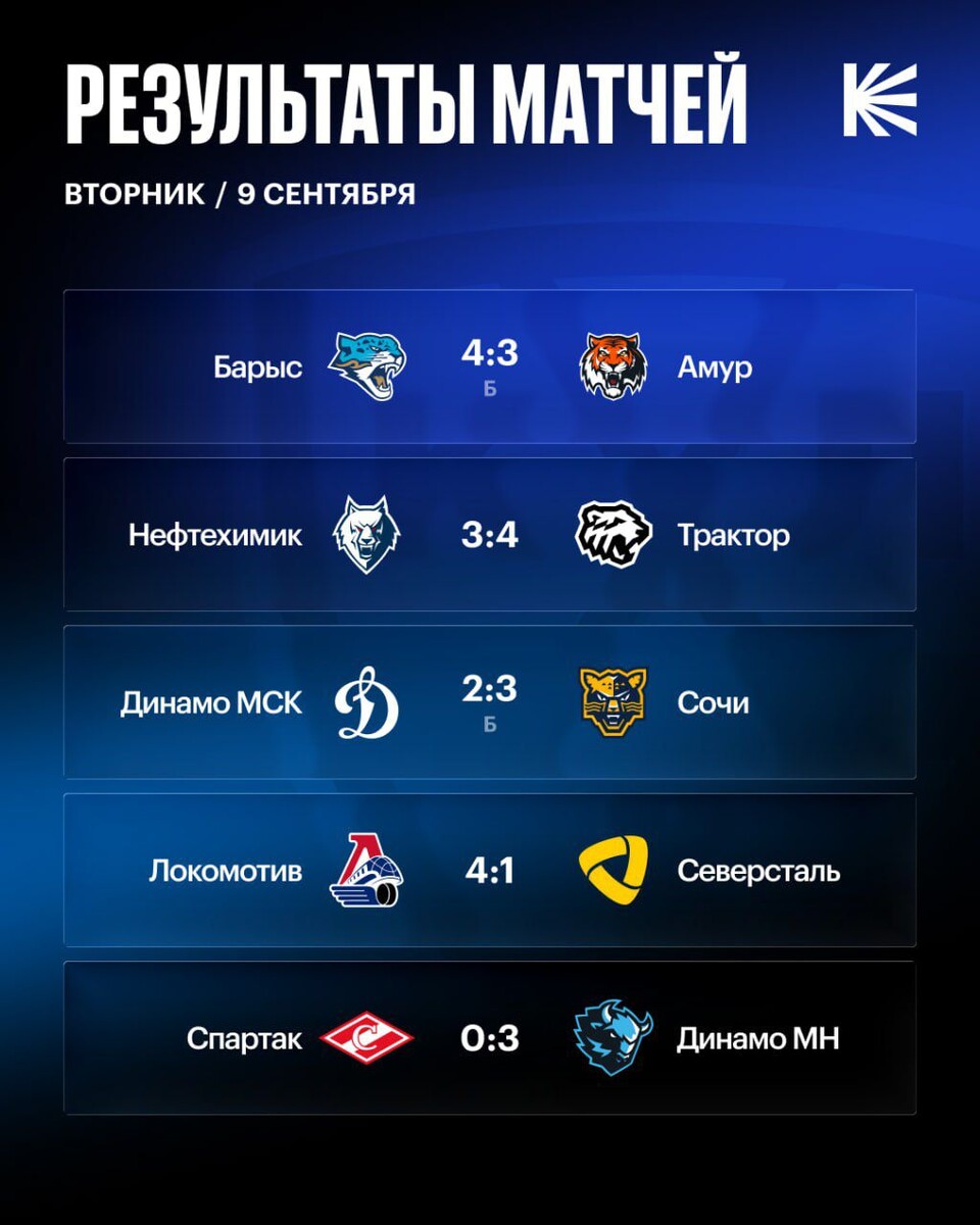 Итоги дня в КХЛ «Барыс» и «Сочи» вырвали победы, отыгравшись с 0:2 в своих матчах, «Нефтехимик» потрепал нервы «Трактору», но не смог набрать очков, «Локомотив» и минское «Динамо» уверенно выиграли свои матчи. @nhockey