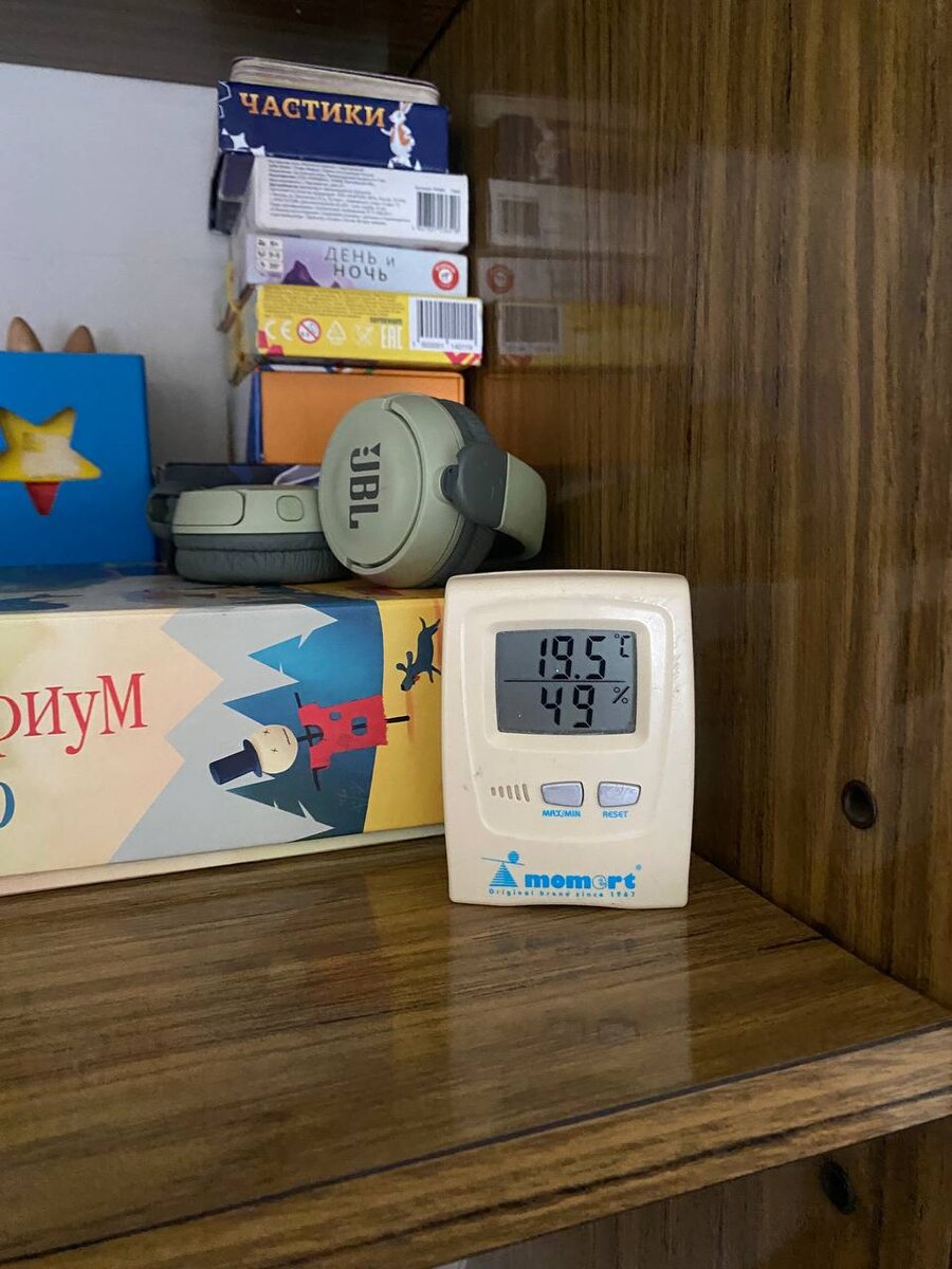 Давно не было фоток моих гигрометров)) Редко, на самом деле, на них смотрю. Комфортные параметры научилась и так чувствовать. Из интересного — младшему и в футболке жарко. Укрывается редко, даже ночью. Ps — цифры, считай, идеальные, но это просто везет с погодой сейчас.