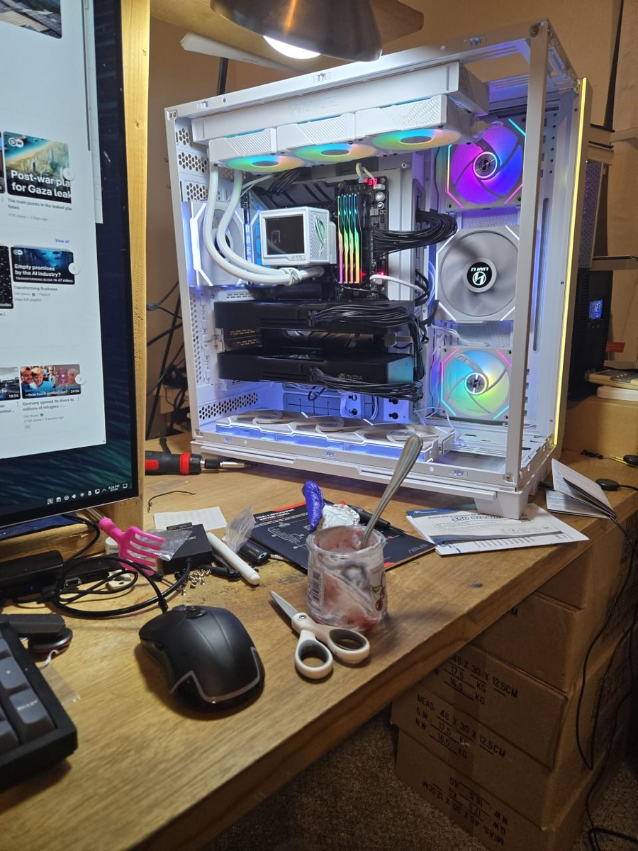 Крутые сборки люди делают под ИИ. Чел собрал себе монстра: две RTX 6000 с общими 192 гигабайтами видеопамяти плюс 128 оперативки. В довесок - процессор Ryzen 7950X3D, который, по признанию самого автора, выглядит немного "скучно" в такой компании. Система тянет Qwen 235B в квантованной версии, но главный страх у автора даже не в железе, а в том, что домашняя проводка на 15 ампер не выдержит и всё закончится пожаром :) Цена в России ориентировочно от 1.6 до 2.2 млн р. за две RTX 6000 Ada плюс около 65–80 тыс. р. за Ryzen 7950X3D, итого в районе 1.7–2.3 млн р. без учёта остального железа и периферии. На вторичке ценник пары может опуститься ближе к 1.1–1.4 млн р, но зависит от состояния и гарантий. По скорости - до 100 токенов в секунду (300 символов) для упомянутой ИИ. Русский ИТ бизнес