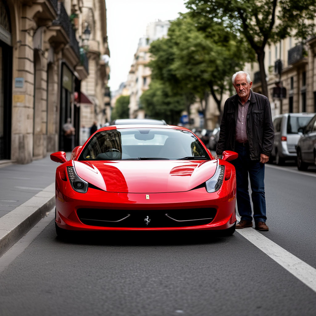 Первым делом, старик решил прокатиться по городу, чтобы показать всем, кто здесь теперь главный! Он нарочно проезжал мимо шикарных ресторанов и дорогих бутиков, где раньше мог только мечтать о чашке кофе или новой паре носков. Теперь же, он вальяжно улыбался, проезжая мимо, и подмигивал изумлённым прохожим. Да, Ferrari – это не просто машина, это пропуск в другой мир!