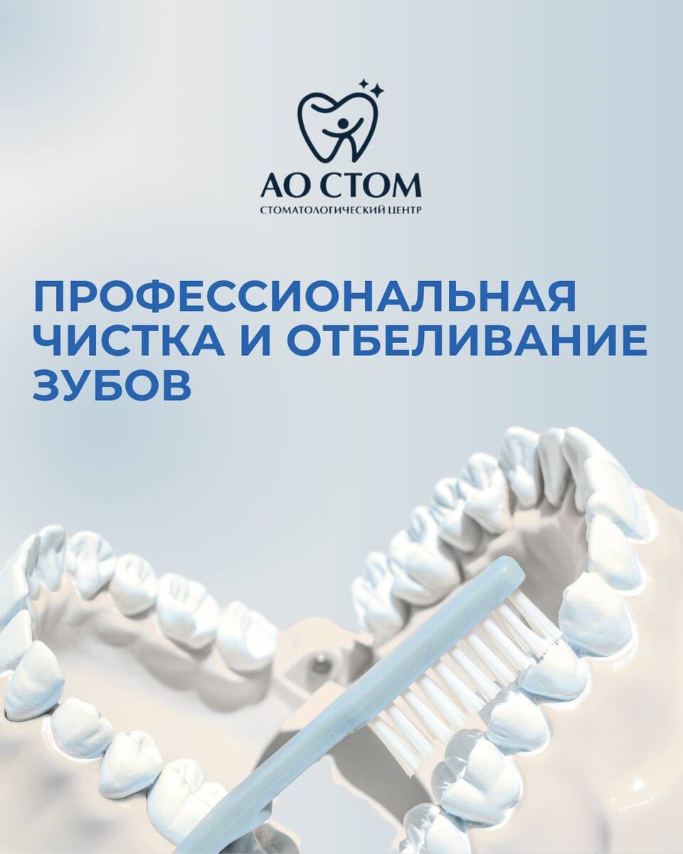 🦷 Белоснежная улыбка — это не только про красоту, но и про уверенность. Когда человек улыбается свободно, без стеснения, он излучает харизму и лёгкость. Улыбка становится первым впечатлением, которое мы производим, и именно она может открыть двери к новым знакомствам, карьере и гармонии с собой. В «АО СТОМ» мы знаем: красивая улыбка — это ваш главный аксессуар. Современные методы отбеливания и эстетической стоматологии позволяют достичь естественной белизны зубов безопасно и комфортно. Ведь настоящая уверенность начинается именно с улыбки. 🤍 🔥 Только в сентябре! Отбеливание зубов ZOOM 4 — за 39 500 ₽ вместо 45 000 ₽ + профессиональная гигиена в подарок! Успейте записаться до 30.09.2025 г. и начните сиять улыбкой уже этой осенью! Что вы получите с отбеливанием ZOOM 4: ✔ Яркая улыбка сразу — до 8 тонов светлее за 1 сеанс. ✔ Безопасность и комфорт — щадящее отбеливание без вреда для эмали. ✔ Длительный эффект — результат сохраняется 12–18 месяцев. ✔ Контроль врача — процедура прохо