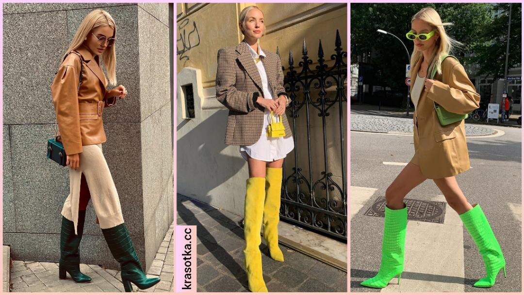 Ученые выяснили: при встрече люди в первую очередь смотрят на обувь. Сегодня мы расскажем , как сделать ваш образ ярче, используя советы профессиональных дизайнеров. Это выбор творческих натур, которые не хотят мрачно выглядеть осенью. Сапоги со стразами являются сильным акцентом в образе, поэтому чтобы не перегружать эмоциональный фон, одежду стоит выбирать без принтов и рисунков. Обувь прекрасно сочетается с синими прямыми джинсами и свитером оливкового цвета. Читайте также: С чем носить оливковый цвет в одежде: 16 интересных и модных комбинаций Они вдохновляют всех вокруг. Определенно, дама на шпильках будет выгодно выделяться среди общества. Если женщина наденет светлые брюки, белую рубашку, длинный плащ и солнцезащитные очки с оправой в тон обуви, получится образ с обложки глянцевого журнала. Читайте также: С чем носить неоновые цвета: 25 креативных идей для харизматичных дам Обувь на небольшом каблуке делает силуэт более привлекательным. Ноги будут казаться визуально длиннее, пох