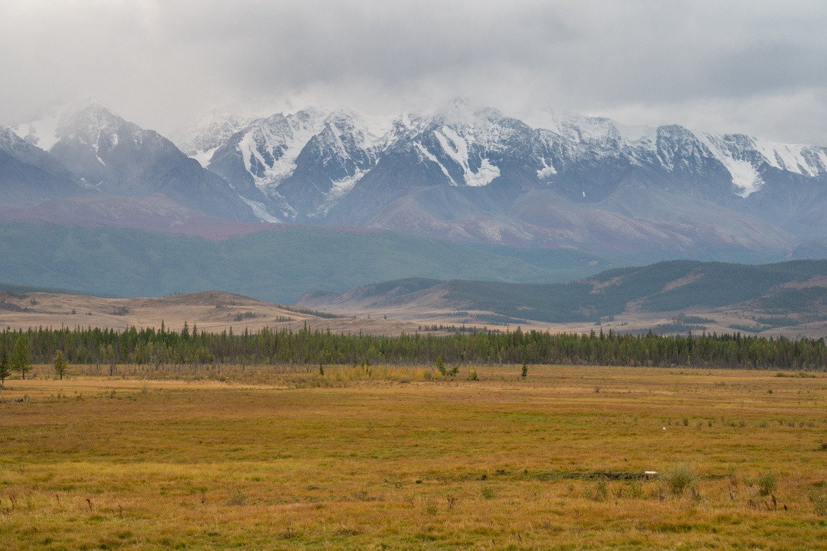 Чуйский тракт подобен горной реке: от Манжерока до Акташа вьется меж гор, а потом горы постепенно расступаются все дольше, и вот тракт выходит на простор Курайской степи. Именно дорога на фоне далёких заснеженных гор, на мой взгляд, самый красивый отрезок Чуйского тракта.
