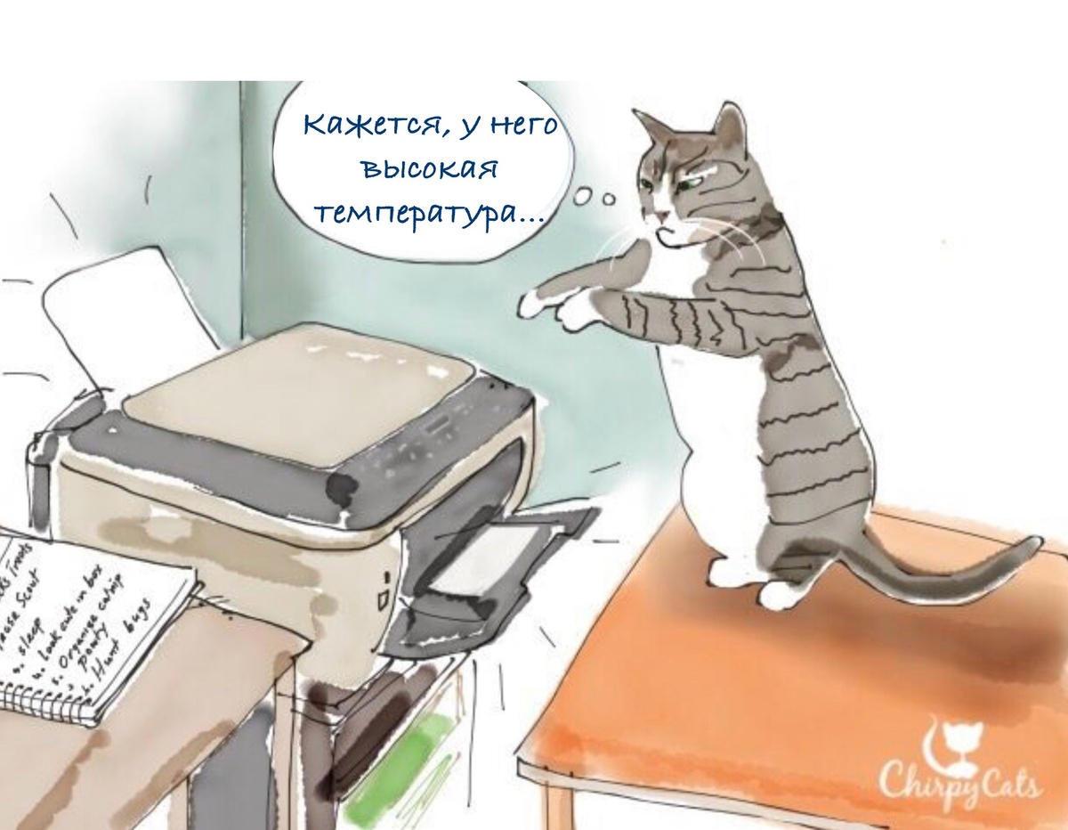 Мяу вам, дорогие мои! Это я, Обожайчик. Ну… Если вместе упоминается котик и какое-либо чудо в перьях инженерно-айтишной мысли, то — либо котик пострадал, либо его отругали. Чаще всего — и то, и другое. А так как Васькова подконтрольная (по кличке Жо) погрязла в компьютерной технике по самое это самое, то… не раз мой друг пострадал и был обруган. Ох, не один лишь раз! Ну так вот, обложилась Жо интеллектуальными устройствами аки осеннее небо дождевыми тучами. Ни улечься, ни разлечься. Да даже нормально продефилировать между монитором и клавиатурой плохо получается: то хвостом за колонку заденешь, то боком упрёшься в это вот… Ну так вот, принтер — это существо с удивительно быстрым обменом веществ. Не успело пожрать — уже, извините за натурализм, выделяет продукты жизнедеятельности. Прям вот выплёвывает. А плюётся оно печатной продукцией. Ну, не цельными томами и брошюрами, а, тык-скать, структурными единицами. Формата лист. А на листах — вонючие чёрненькие закорючки. Ну, то что вонючие