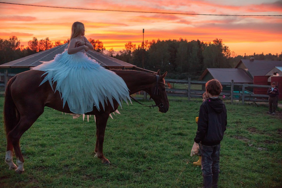 Моё знакомство с лошадьми 🐎 Первый раз все мы видели лошадей в детстве) Во всех городах, в центральных парках гуляли девушки с лошадками - большими и поменьше, предлагая покататься (в моем детстве это стоило 5 рублей, может ошибаюсь, но именно эта цифра запомнилась). В 2014 году это уже была полноценная конная прогулка в Абхазии по горам. Конь мне достался самый красивый. Светловолосый, кремового цвета 😍 с логичным именем Красавчик 🕶️ А уже плотное общение, как побывать в конюшне, покормить лошадей 🐎 покатать на них детей, командовать конем, даже какашки за ним прибрать 🤣 Ну и конечно же сфотографироваться 📸 Такое случилось гораздо позже, уже в 2023-2024 году, благодаря моим друзьям) Они нас с собой взяли и показали столь близкое общение с кониками 🤗❤️🔥 Эти животные очень красивы. Одни их огромные и умные глаза 👀, рассматривающие тебя, как будто все зная о тебе) Заглядывающие внутрь. Чего только стоит их взгляд. Съёмка с крыльями была довольно стрессовой для нас при по