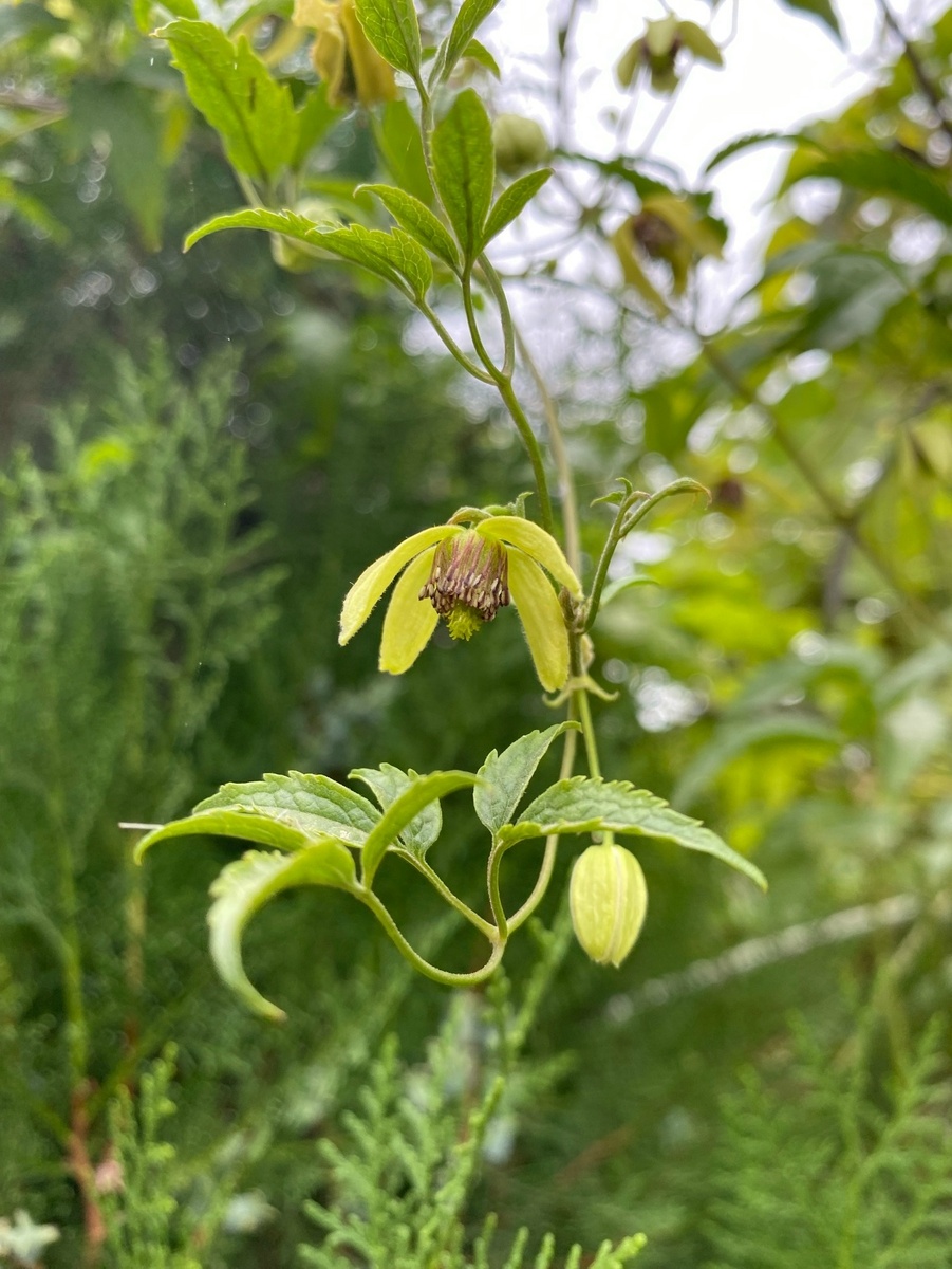 Клематис виргинский вдруг зацвел буйным цветом.