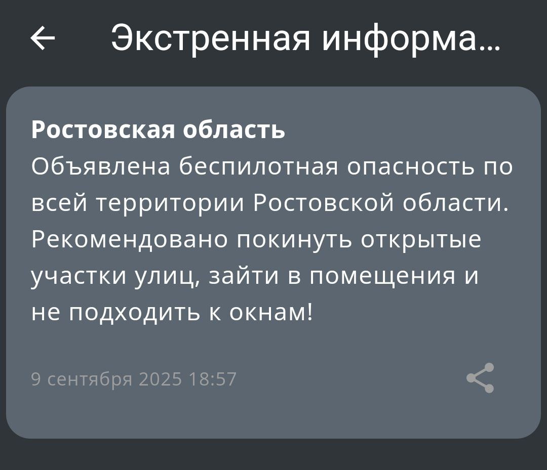 ‼️В Ростовской области объявлена беспилотная опасность ‼️