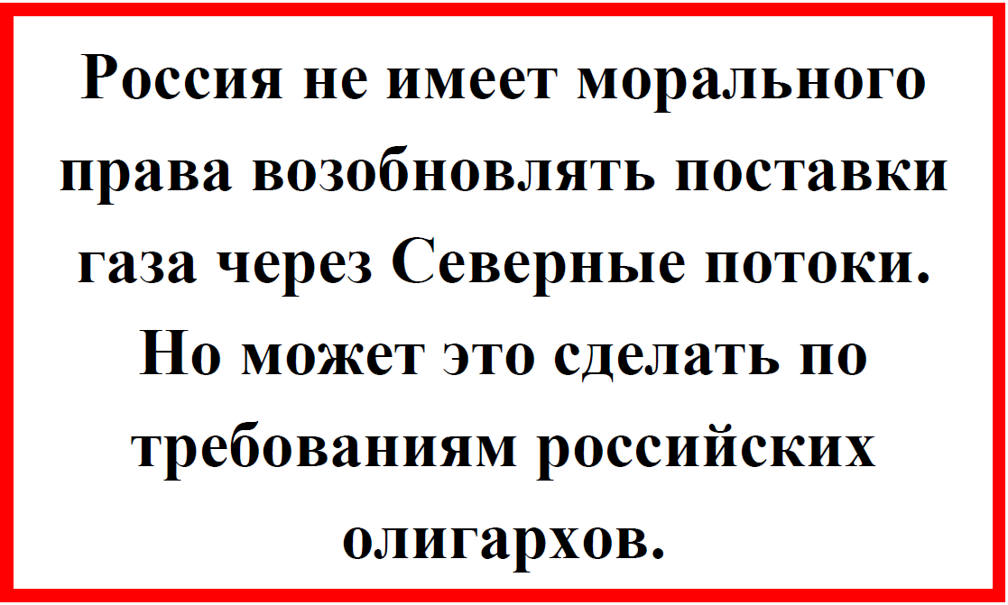 Россия не имеет морального права возобновлять поставки газа через Северные потоки. Но может это сделать по требованиям российских олигархов.