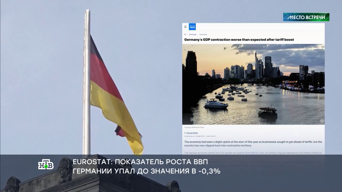 Германия скатилась на экономическое дно. Это не заголовок российской прессы, а свежие оценки Евростата. Ведомство публикует очень недобрые для Берлина цифры. За этот год немецкий ВВП стал показывать отрицательный рост — минус 0,3%. Это один из худших европейских показателей, хуже только у Финляндии — минус 0,4%.