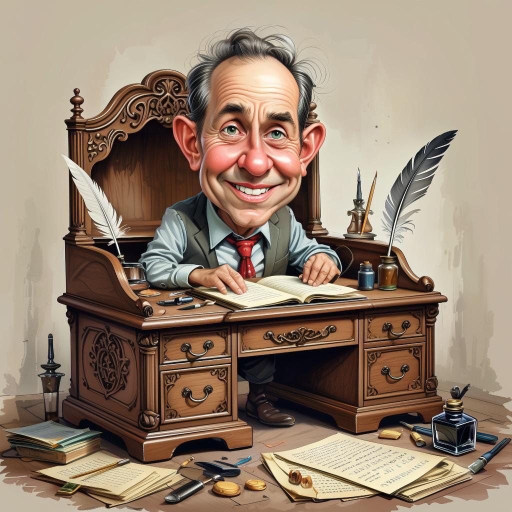 Справа расположены три глубоких ящика с медными ручками, потемневшими от времени. В верхнем ящике живут ручки, карандаши и скрепки, средний хранит важные документы, а нижний – старые тетради и блокноты с заметками.