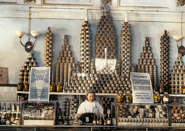 Пирамиды из банок строили не случайно — это был способ показать покупателям, что товара много. Психология советской торговли работала иначе, чем в рыночной экономике.
