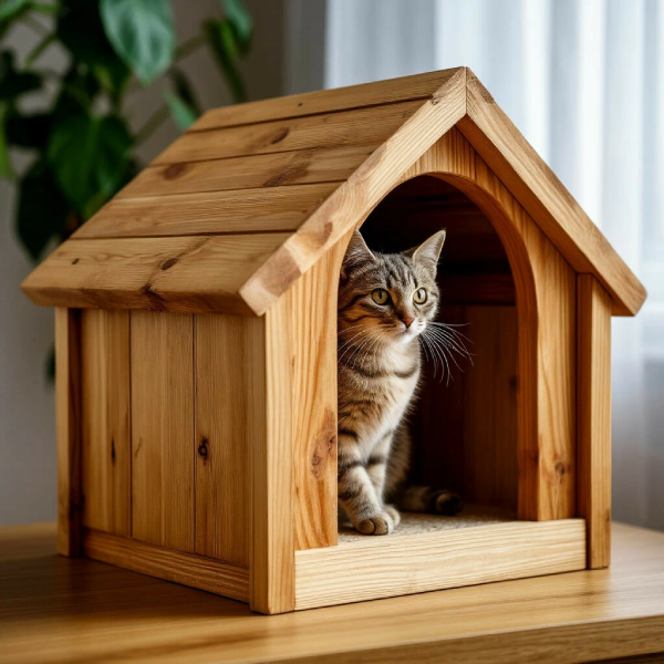 Вот отличный проект — дом для кошки из дерева! Он станет её крепостью и уютным уголком. Представьте: маленький уютный домик с мягкой подстилкой, куда кошка захочет спрятаться и отдыхать. Чтобы сделать такой дом, тебе понадобится: