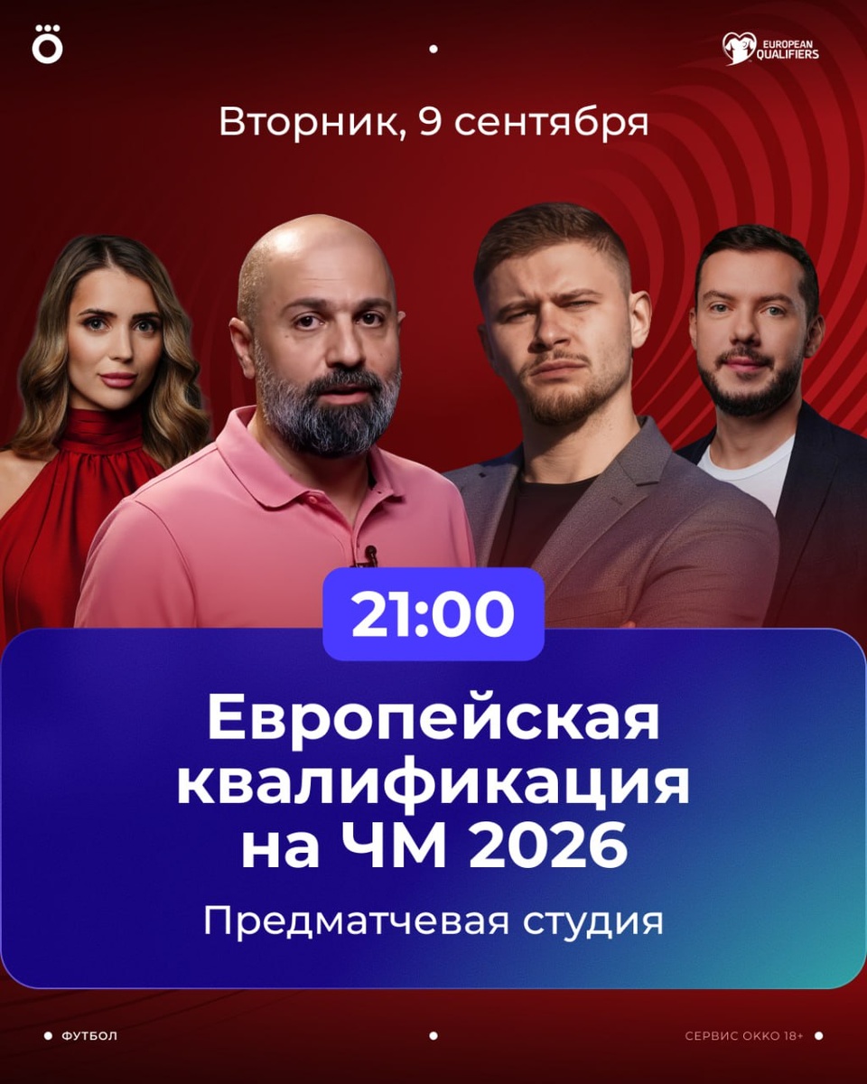 Обсуждаем европейскую квалификацию на ЧМ. Включай через час в Okko, на YouTube или в VK Видео.