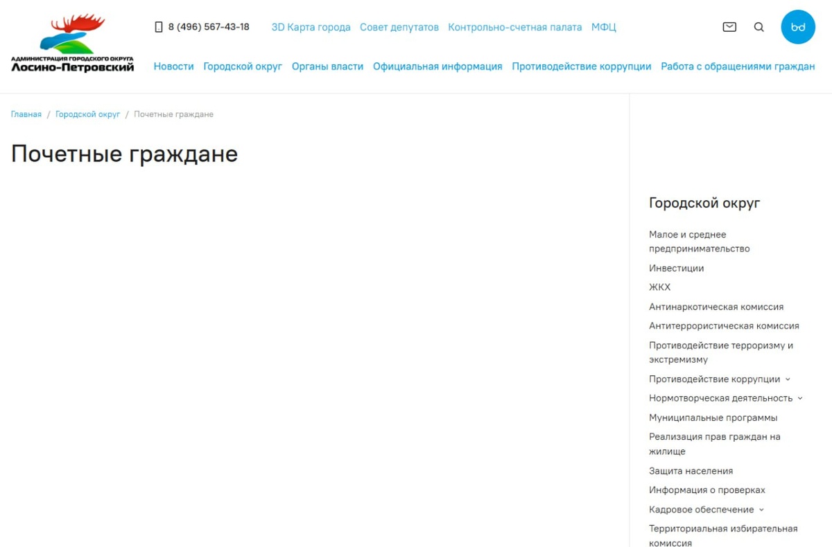 🏅 Почётным жителям Лосино-Петровского не досталось места на официальном сайте администрации округа