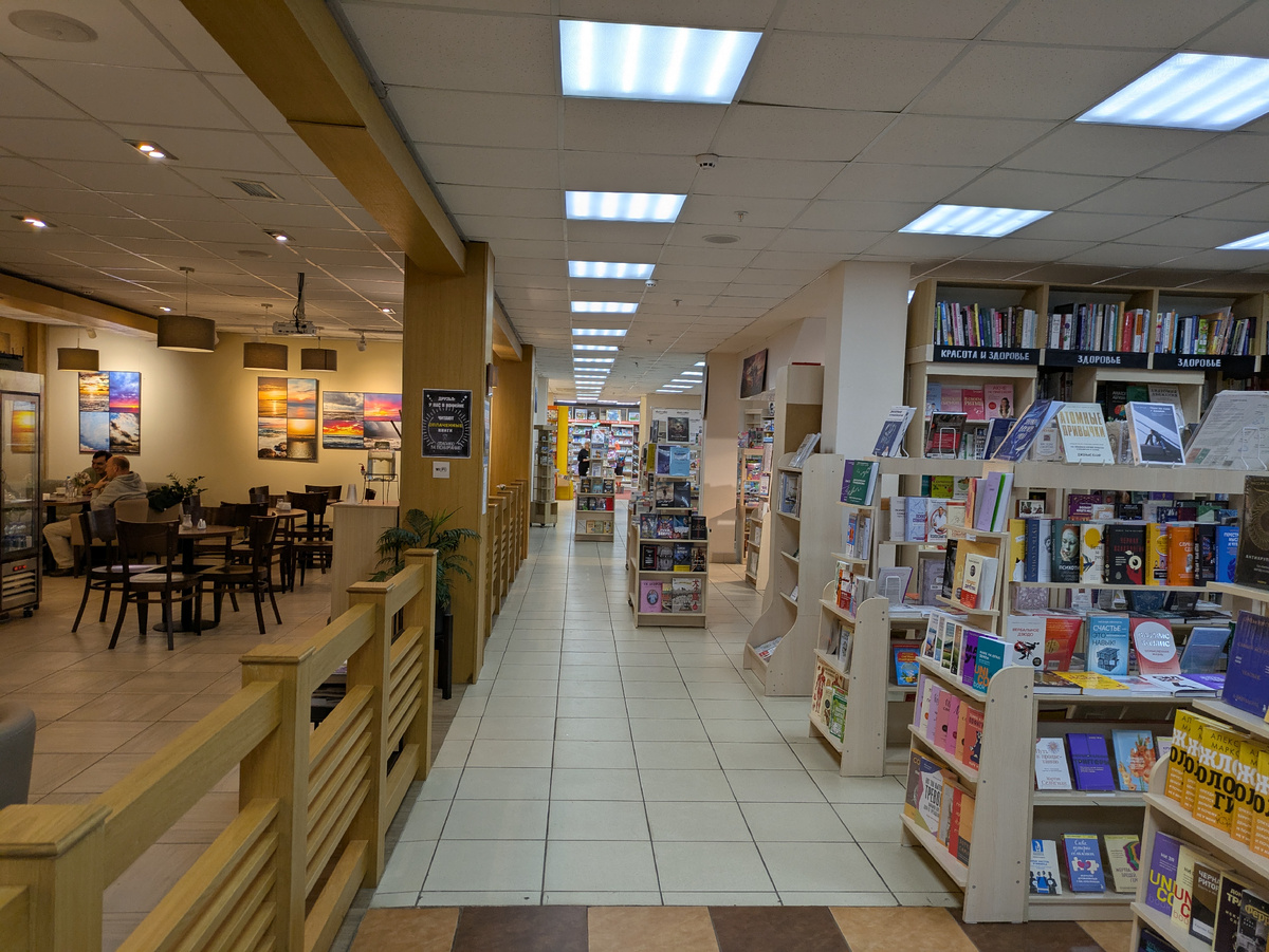 В моём городе нет большого несетевого книжного, да и сетевые не особо впечатляющие. А я люблю побродить среди стеллажей и полок. Поэтому очутившись в Твери не могла пройти мимо огромной "Абракнигабры". Это не просто магазин, это культурное пространство. Там проходят презентации, встречи, всякое-такое. В магазине бывали Лимонов, Иконникова, Решетун, Бакус и многие другие известные люди. А ещё там есть кофейня. По-моему, это очень круто. Купил книжку и засел сразу читать с каким-нибудь хитропридуманным рафом. Книг много, в том числе, по разным специальностям. Меня, например, порадовал отдел филологии. Себе выбрала пару книг в букинистическом отделе, есть и такой. Малышку-дочку порадовала книжками с пазлами и крутилками. Кстати, на детском отделе мягкое покрытие, вот такая забота. С долей креатива сотрудники пытаются хоть как-то пристроить невостребованные книги. Из неудобного: вход в книжный в одном месте, а выход в другом. Ты вообще оказываешься на другой улице! Туриста-книголюба здоро