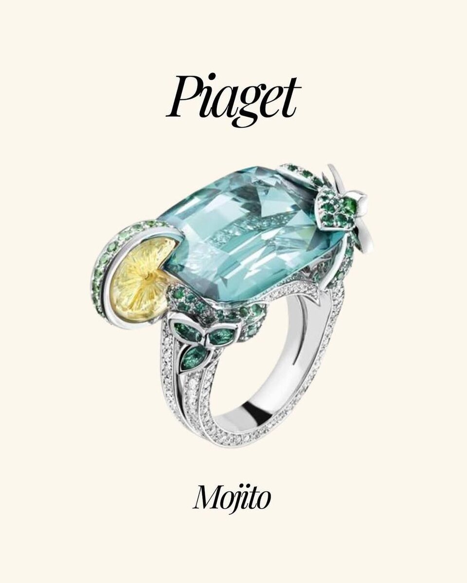 Нам двойную порцию. Безо льда. Piaget превратили свои кольца в коктейли, которые можно даже тем, кто отказался от алкоголя — Мохито, Космополитен, виски со льдом. Каждая модель отличается характерным декором: от дольки лимона в цитрине до кубиков льда из полированного кварца.
