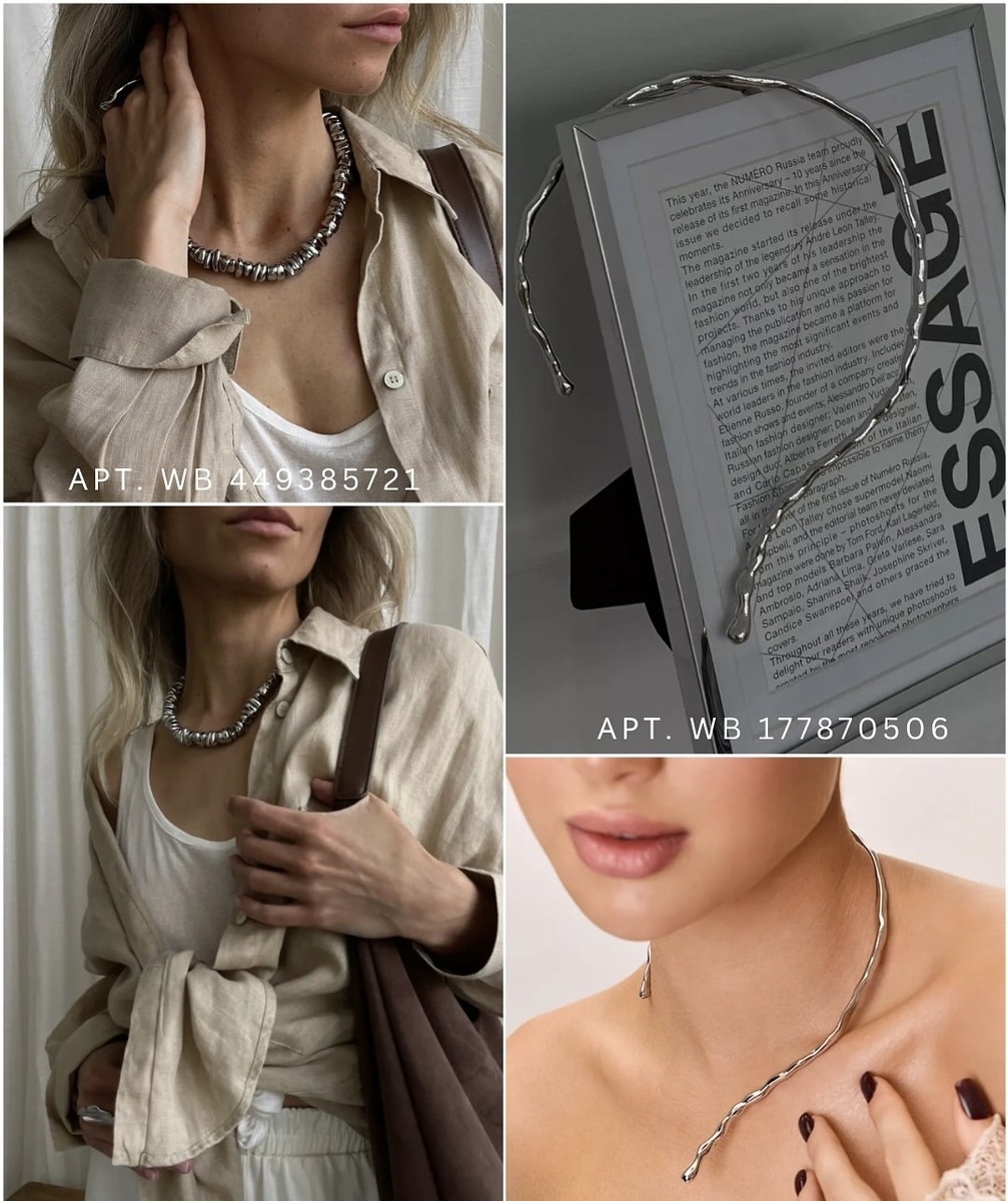 Скульптурные формы, «живая» поверхность металла и лёгкий гранж — такой бижутерии сейчас хватает одного штриха, чтобы простой лук из футболки и льняной рубашки выглядел продуманно. Ниже — все позиции строго по порядку с артикулом WB, для каждой — что это, как сидит и как стилизовать.