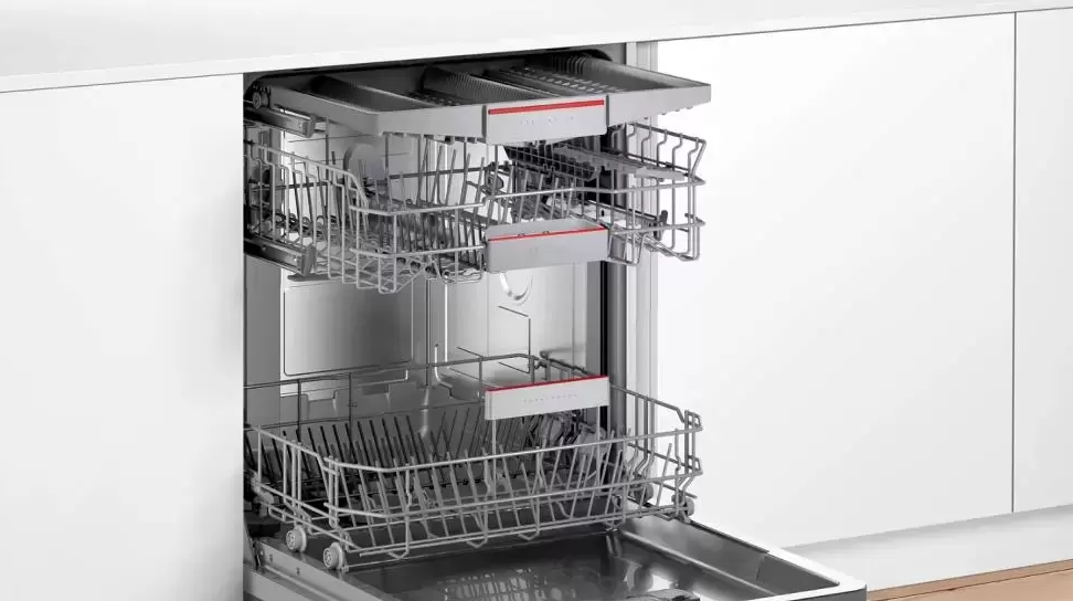 Компания Bosch уже много лет считается одним из лидеров в производстве посудомоечных машин. Техника бренда объединяет надёжность, высокую функциональность и внимание к деталям. Модель Bosch SMV4HVX31E относится к линейке полностью встраиваемых машин и создана для тех, кто ценит удобство, экономию ресурсов и современный дизайн. SMV4HVX31E — это полноразмерная машина шириной 60 см, которая полностью скрывается за мебельным фасадом. Панель управления вынесена на верхний торец дверцы и становится доступной только после открытия. В процессе работы на пол проецируется индикатор InfoLight — мягкий световой луч, который сигнализирует, что программа ещё не завершена. Внутреннее пространство организовано по системе VarioFlex. Оно включает три уровня загрузки: Благодаря гибким держателям и складывающимся элементам корзин можно легко адаптировать камеру под нестандартную посуду. Машина рассчитана на 14 комплектов посуды — этого достаточно для семьи из 3–5 человек или ужина с гостями. В памяти моде