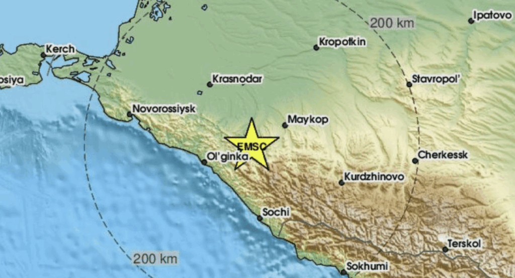 На Кубани вечером 9 сентября произошло землетрясение, сообщает Европейско-Средиземноморский сейсмологический центр. Подземные толчки магнитудой 4,6 по шкале Рихтера зафиксировали в 19:55. Эпицентр оказался на глубине 10 км, в 11 км от Апшеронска и в 44 км от Майкопа. В соцсетях кубанцы опубликовали видео с качающейся на потолке люстрой и трясущейся мебелью. Толчки почувствовали жители Сочи, Туапсе и Майкопа. Ранее «Краснодарские известия» писали, что ученый Чебров назвал последствия смещения Камчатки после землетрясения.