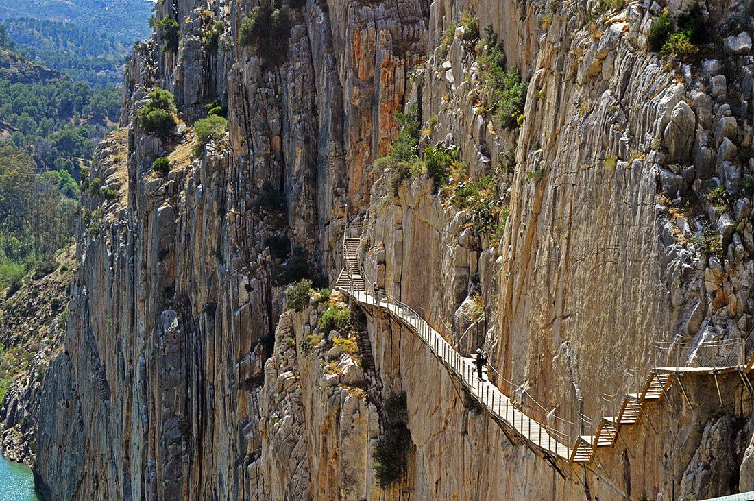Если «всё включено» кажется вам скучным, а душа требует острых ощущений, стоит отправиться туда, где сердце замирает, а страх и восторг сплетаются в одно. Эти места — для тех, кто готов рискнуть ради незабываемых впечатлений. Здесь ждут вулканы, ледяные лабиринты, дороги смерти и встречи с хищниками. Главное правило: смелость обязательна, а страховка — ваш лучший друг. Официальное название этого маршрута — Эль Каминито-дель-Рей, но в народе его прозвали «Тропа смерти». Треккинг протянулся по ущелью Эль Чорро в испанской провинции Малага — одном из любимых мест альпинистов Европы. Изначально дорогу построили для рабочих, возводивших гидросооружения, но со временем тропа обветшала и стала смертельно опасной. После череды трагедий власти в 2001 году полностью закрыли доступ туристам. Однако экстремалы продолжали искать способ попасть сюда. В 2016 году Королевскую тропу отреставрировали: появились перила, ограждения и обязательные каски. Тем не менее даже сегодня она остаётся одной из самы