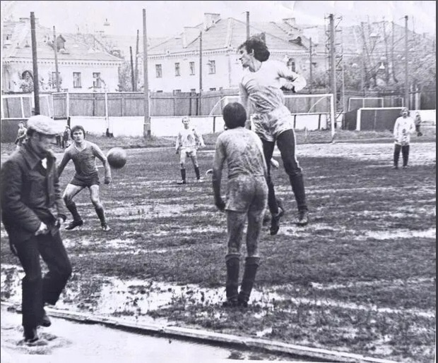 "Матч состоится при любой погоде" #озерск #изисторииозерскогоспорта Озерск.Стадион Гранит. Футбол.