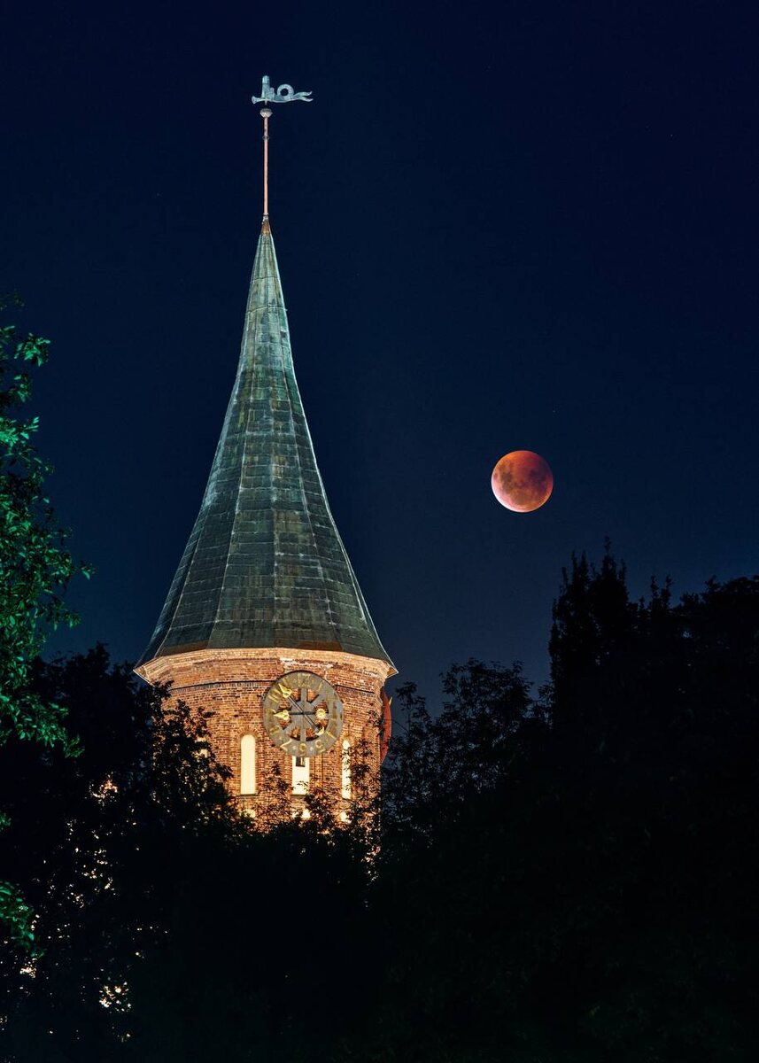 Ну что, держитесь! Это «кровавая луна» или полное лунное затмение над Кафедральным собором в 20:51 по местному времени 🌕