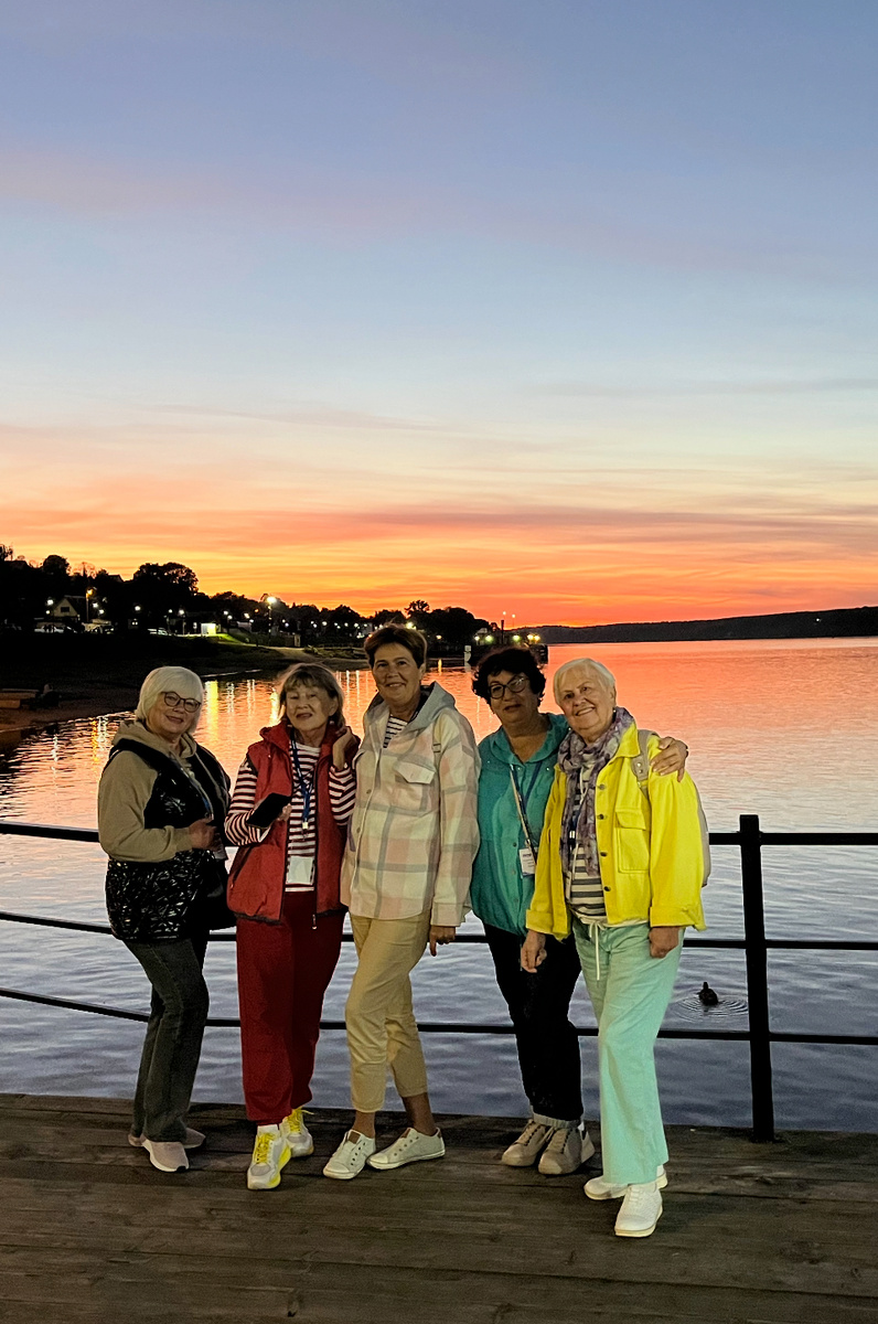 Всем большой привет👋 Ох.. друзья мои.. передо мной непосильная задача😀 Как в одну статью уместить все эмоции и впечатления сегодняшнего дня🤗. Представьте, мы посетили два города с обзорными экскурсиями, наделали уйму фотографий.. ели - пили очень вкусно и к тому же любовались очень красивыми природными явлениями. Но главное, о чем хочу сказать, —нам все нравится! 🥰 Вот посмотрите на наши довольные лица в итоге дня и вы сами все поймете. И это уже после того, как были пройдены и осмотрены два города. Я писала во вчерашней статье, что нам изменили порядок посещения городов. И сегодня с утра после завтрака был Рыбинск, а в пять часов вечера Тутаев. Когда утром мы подходили к Рыбинску, еще с воды я любовалась прибрежной линией города. Потом мы сошли на берег, нас сводили в Морской музей адмирала Ушакова Девушка, которая провела нам экскурсию, меня поразила своими знаниями и очень интересной подачей материала. Я сначала подумала— ну зачем мне такой музей.. а потом сидела засл